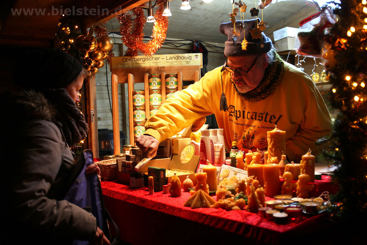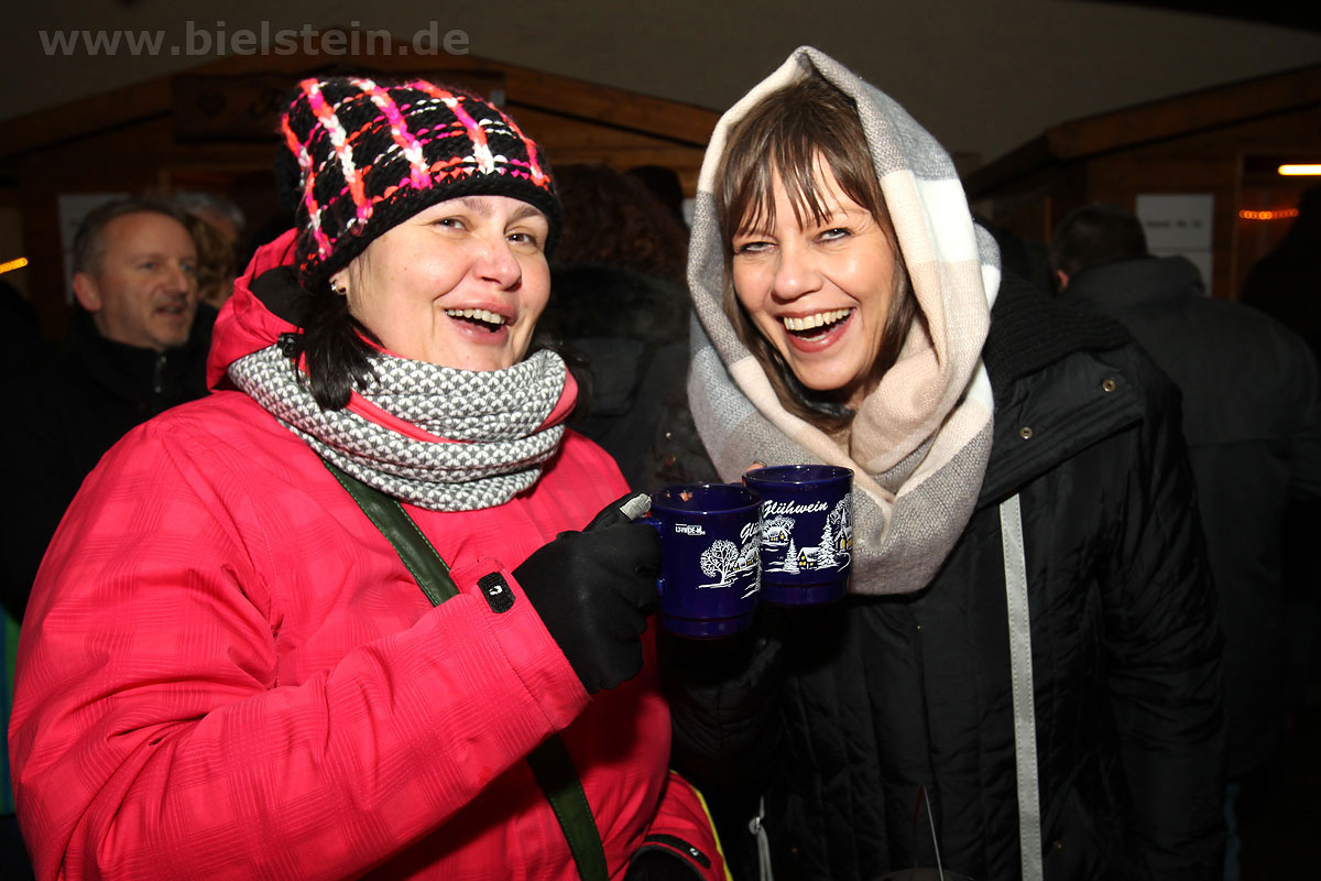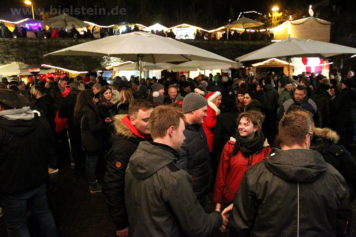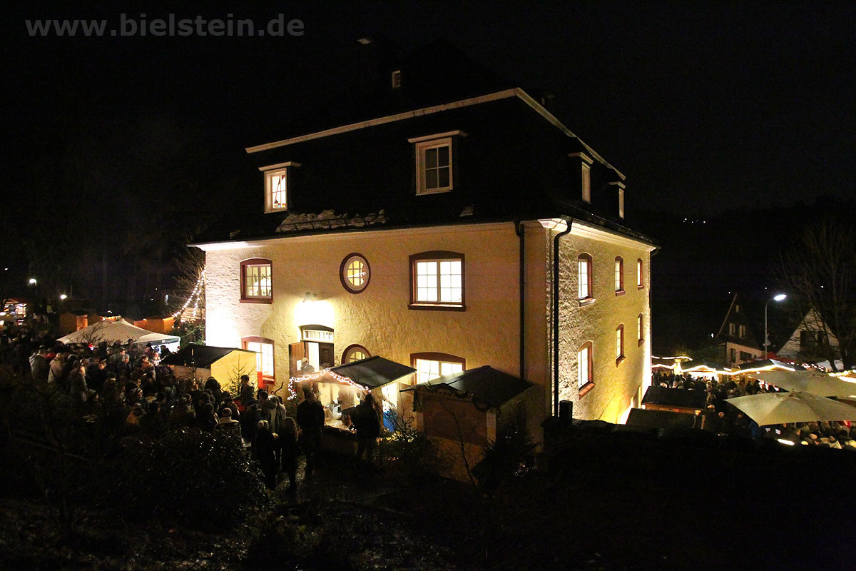 Auch beim zehnten Weihnachtsmarkt rund um das Burghaus in Bielstein kamen – trotz nass-kaltem Wetter – wieder viele Besucher, die den Jubiläums-Weihnachtsmarkt mit viel Atmosphäre genießen wollten. So auch der Landrat des Oberbergischen Kreises, Jochen Hagt, der sich von der vorweihnachtlichen Stimmung am dritten Adventswochenende selbst überzeugte. Wie immer bot Bielstein ausgewählte und abwechslungsreiche Musik im Burghof, eine riesige Auswahl an Kulinarischem und Getränken und auch für den Gabentisch noch ein ausreichendes Angebot in den vielen kleinen Holzhütten rund um das Burghaus.