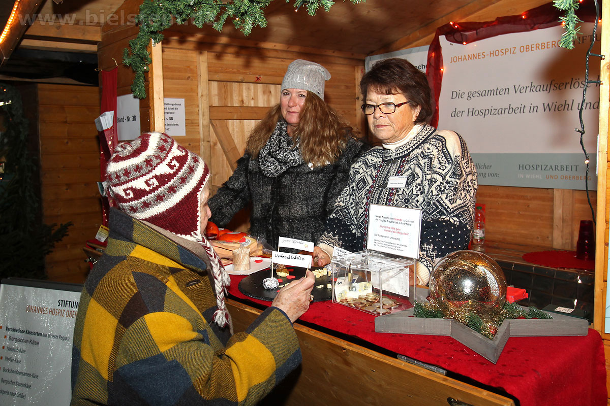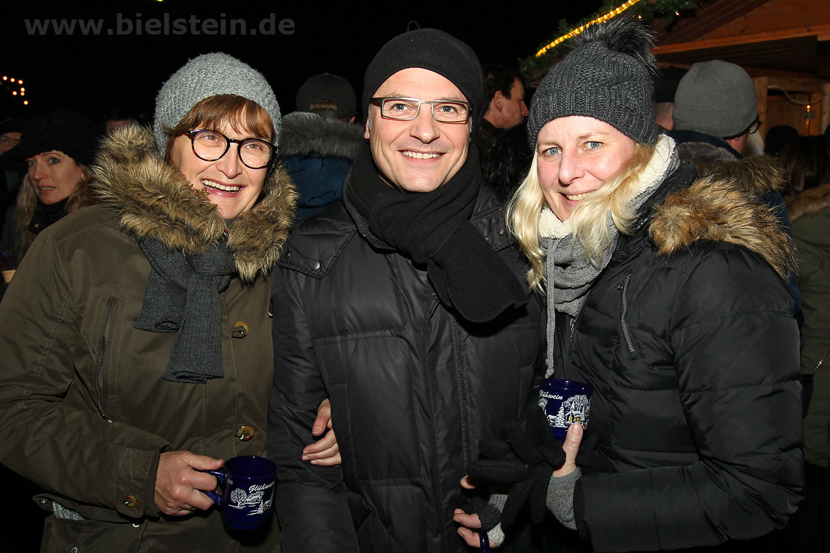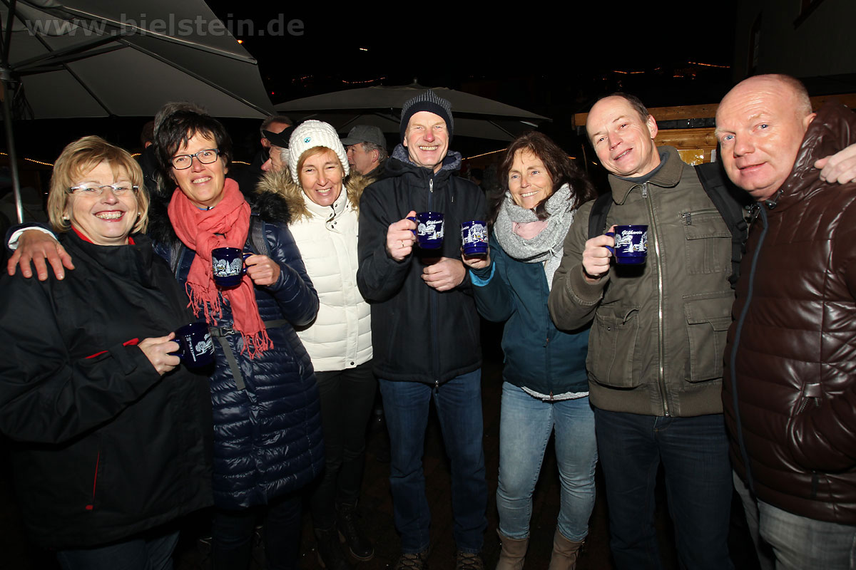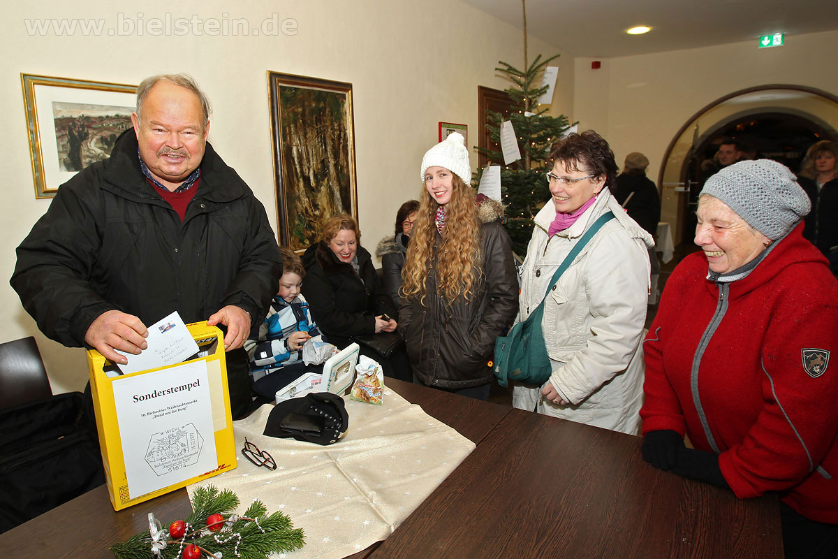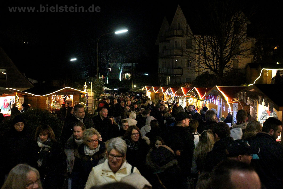 Auch beim zehnten Weihnachtsmarkt rund um das Burghaus in Bielstein kamen – trotz nass-kaltem Wetter – wieder viele Besucher, die den Jubiläums-Weihnachtsmarkt mit viel Atmosphäre genießen wollten. So auch der Landrat des Oberbergischen Kreises, Jochen Hagt, der sich von der vorweihnachtlichen Stimmung am dritten Adventswochenende selbst überzeugte. Wie immer bot Bielstein ausgewählte und abwechslungsreiche Musik im Burghof, eine riesige Auswahl an Kulinarischem und Getränken und auch für den Gabentisch noch ein ausreichendes Angebot in den vielen kleinen Holzhütten rund um das Burghaus.