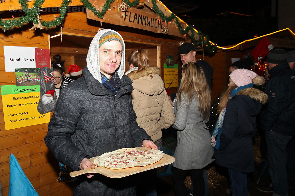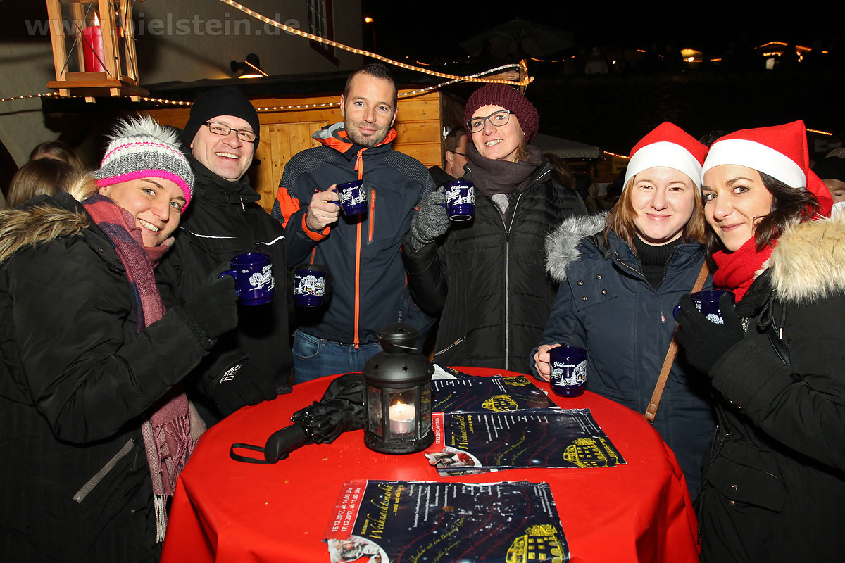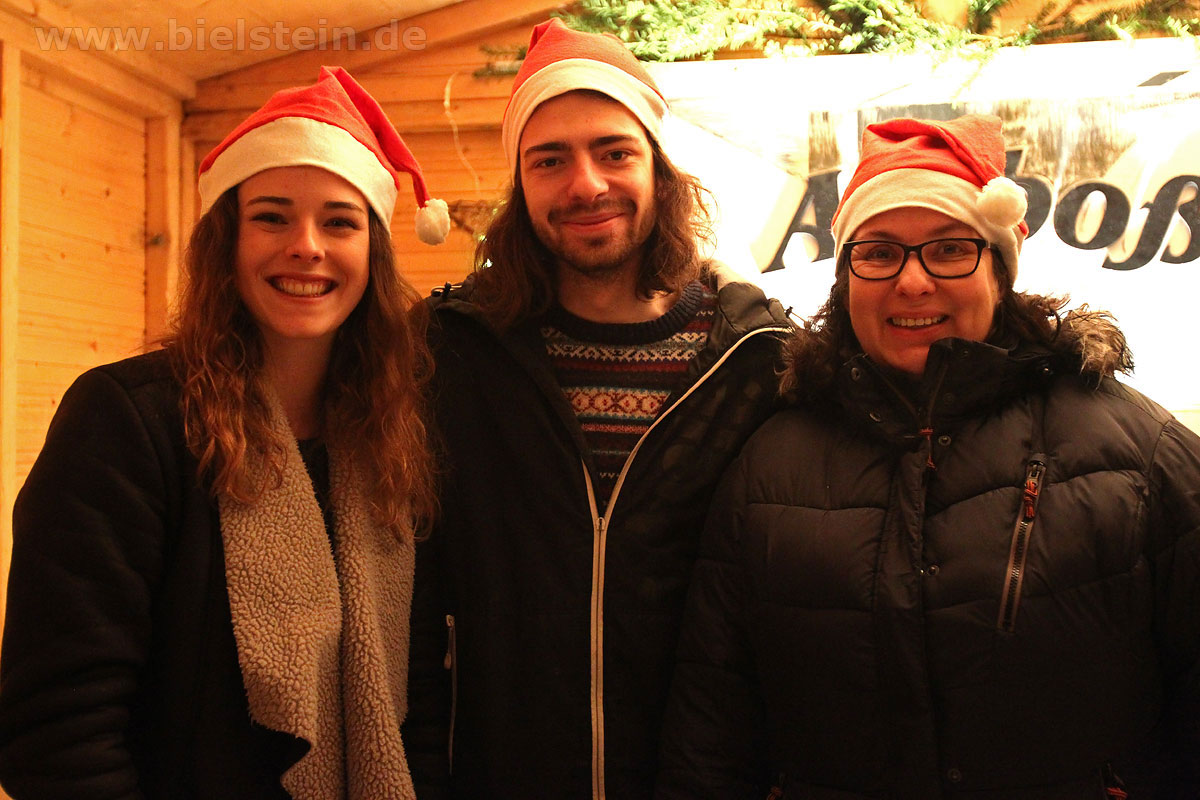 Natürlich hatte die Dorfgemeinschaft Helmerhausen, die gemeinsam mit dem Heimatverein Bielstein den Markt organisiert, wieder die Helmerschen Hefeplätzchen im Angebot – und auch diesmal verrieten sie nicht das Geheimrezept. Dazu konnten sich die Gäste weißen Glühwein oder einen Punsch oder aus dem Feuertopf Winzerglühwein vom „Männerchor Bielstein“ holen. Aus den umliegenden Vereinen waren Jung und Alt im Einsatz. Die Handballmädels des TV Oberbantenberg bot nicht nur Flammkuchen an, sondern war ebenso wie der BSV Bielstein, einigen Helfern aus Waldruhe – dem Dorf für Menschen mit psychischen Behinderungen – und auch der Behindertenwerkstätten Faulmert sowie Mitarbeitern des Wiehler Bauhofes beim Auf- und Abbau des Bielsteiner Weihnachtsmarktes aktiv. Ohne die viele ehrenamtliche Hilfe und den Einsatz auch bei Schnee und Regen, ginge es gar nicht, betonte Hans-Georg Bauer vom Heimatverein. Im eigenes im Burghaus eingerichteten „Burgcafé“ boten beispielsweise die Damen des Frauenchores Oberbantenberg leckere selbstgebackene Torten und weihnachtliche Nuss- oder Mamorkuchen zum Kaffee an. Auch bis hierhin drang an beiden Tagen die Musik von der Bühne vorm Haus – mal traditionell-klassisch mit dem Posaunenchor Wiehl-Remperg und der Siebenbürger Trachtenkapelle oder ganz jazzig, wie mit „Red Clay“, der Jazzband der Musikschule der Homburgischen Gemeinden am Samstag und der Dixie- Band „Bäng Bäng“ am Sonntag. Natürlich durfte am Samstagabend Wiehler Coverband „Nachtexpress“ nicht fehlen, die wieder einmal für die vorweihnachtliche Partystimmung beim Schwof auf dem Markt sorgte.