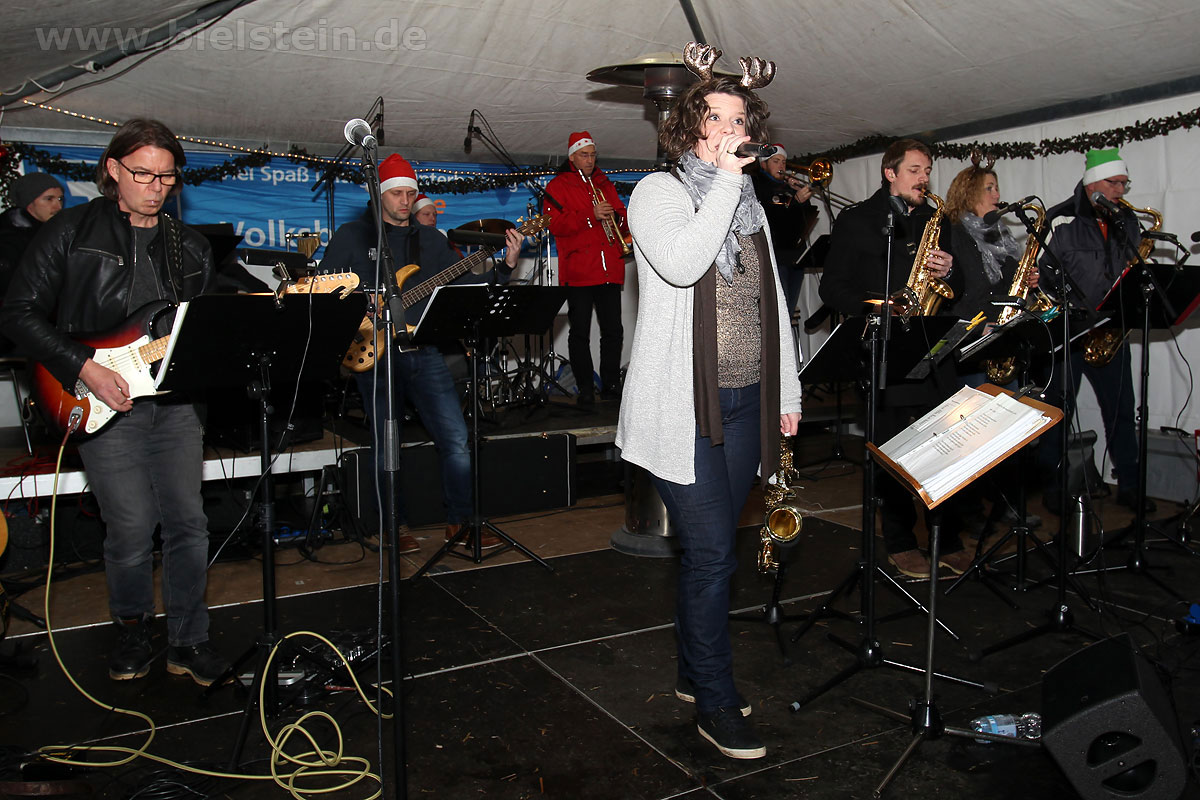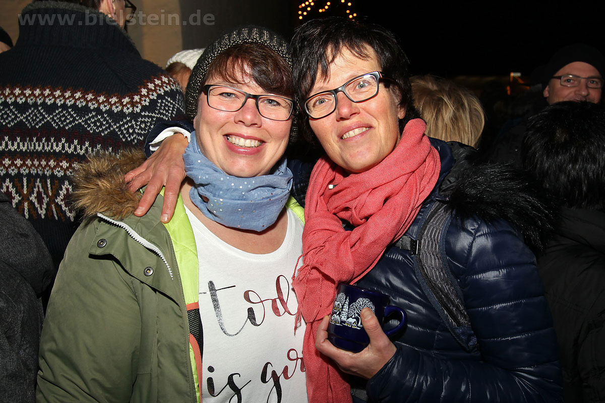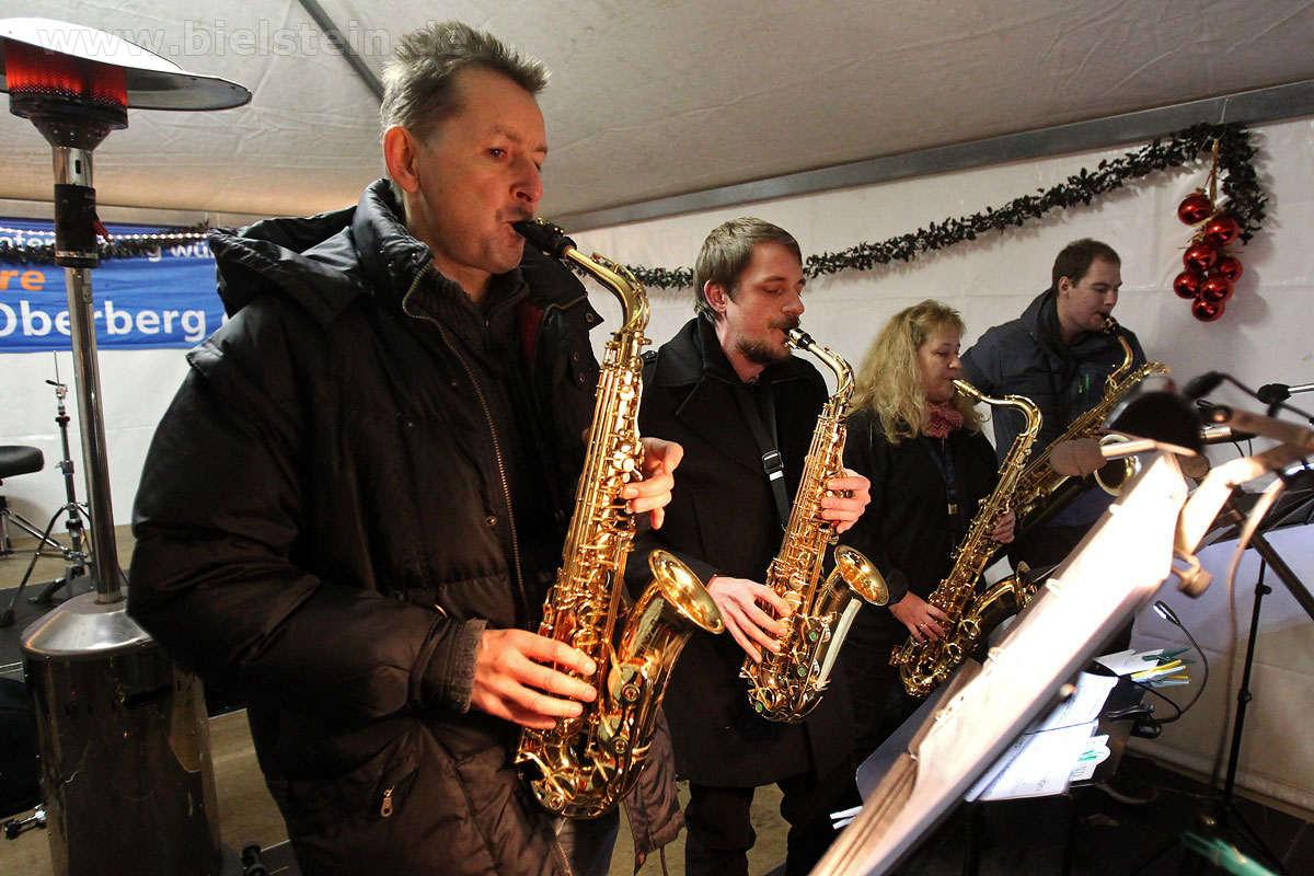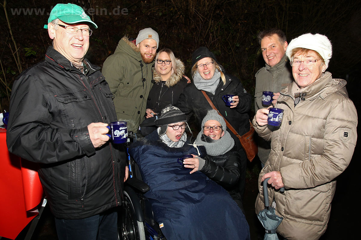 Natürlich hatte die Dorfgemeinschaft Helmerhausen, die gemeinsam mit dem Heimatverein Bielstein den Markt organisiert, wieder die Helmerschen Hefeplätzchen im Angebot – und auch diesmal verrieten sie nicht das Geheimrezept. Dazu konnten sich die Gäste weißen Glühwein oder einen Punsch oder aus dem Feuertopf Winzerglühwein vom „Männerchor Bielstein“ holen. Aus den umliegenden Vereinen waren Jung und Alt im Einsatz. Die Handballmädels des TV Oberbantenberg bot nicht nur Flammkuchen an, sondern war ebenso wie der BSV Bielstein, einigen Helfern aus Waldruhe – dem Dorf für Menschen mit psychischen Behinderungen – und auch der Behindertenwerkstätten Faulmert sowie Mitarbeitern des Wiehler Bauhofes beim Auf- und Abbau des Bielsteiner Weihnachtsmarktes aktiv. Ohne die viele ehrenamtliche Hilfe und den Einsatz auch bei Schnee und Regen, ginge es gar nicht, betonte Hans-Georg Bauer vom Heimatverein. Im eigenes im Burghaus eingerichteten „Burgcafé“ boten beispielsweise die Damen des Frauenchores Oberbantenberg leckere selbstgebackene Torten und weihnachtliche Nuss- oder Mamorkuchen zum Kaffee an. Auch bis hierhin drang an beiden Tagen die Musik von der Bühne vorm Haus – mal traditionell-klassisch mit dem Posaunenchor Wiehl-Remperg und der Siebenbürger Trachtenkapelle oder ganz jazzig, wie mit „Red Clay“, der Jazzband der Musikschule der Homburgischen Gemeinden am Samstag und der Dixie- Band „Bäng Bäng“ am Sonntag. Natürlich durfte am Samstagabend Wiehler Coverband „Nachtexpress“ nicht fehlen, die wieder einmal für die vorweihnachtliche Partystimmung beim Schwof auf dem Markt sorgte.