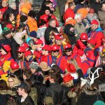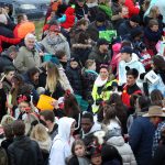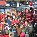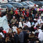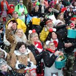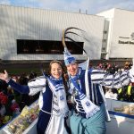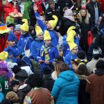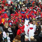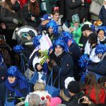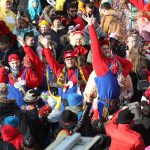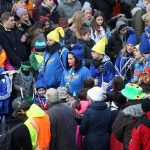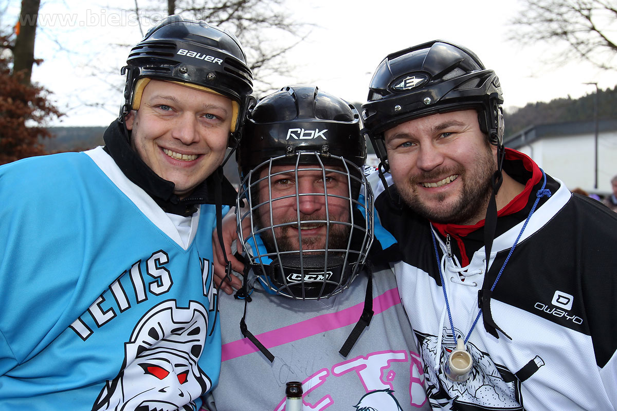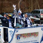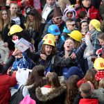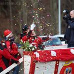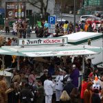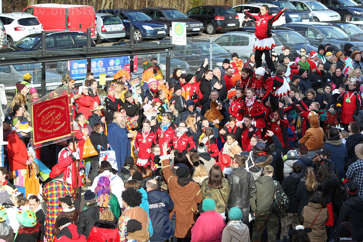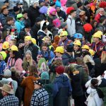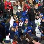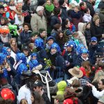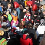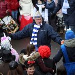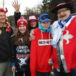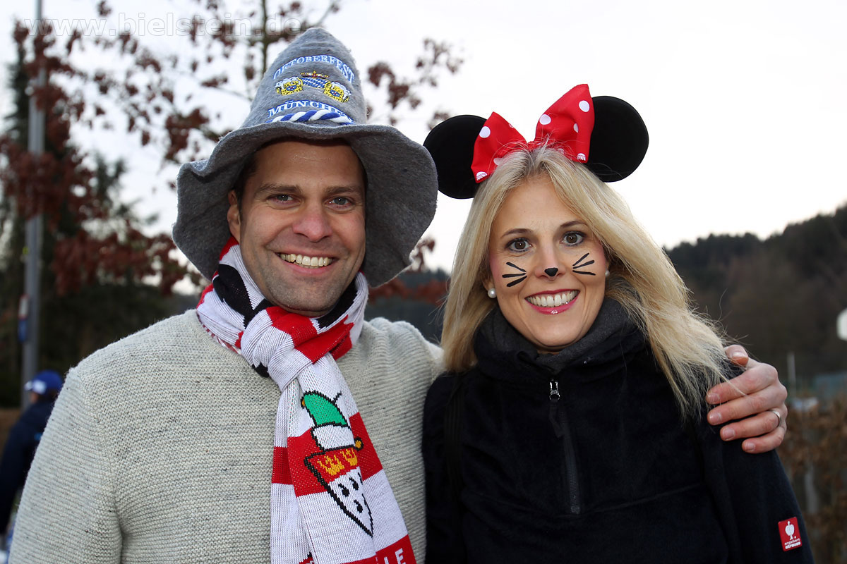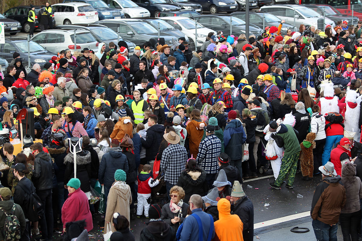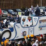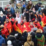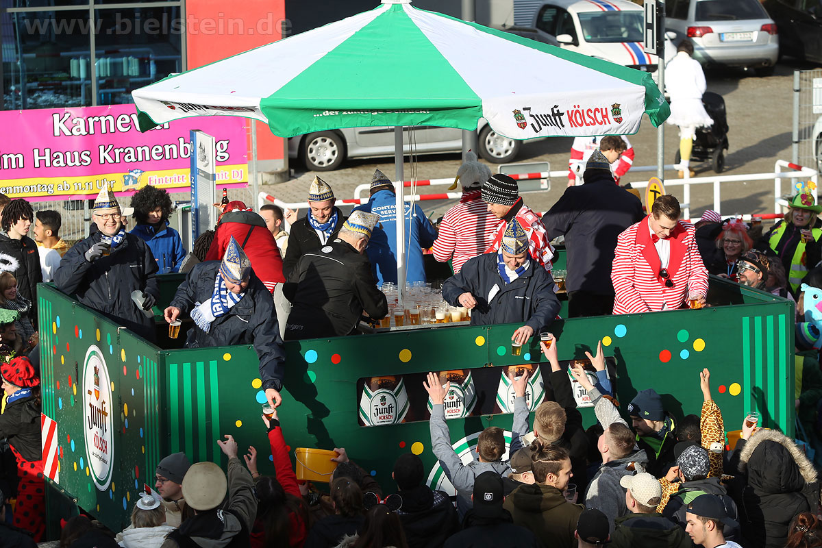 Auch mit dem Wetter hatten die Jecken Glück, denn der Himmel war passend blau-weiß und die Sonne schaute öfter mal zwischen den Wolken hervor und wärmte die auf den Kamelle-Regen wartenden Bielsteiner immer wieder mal auf.