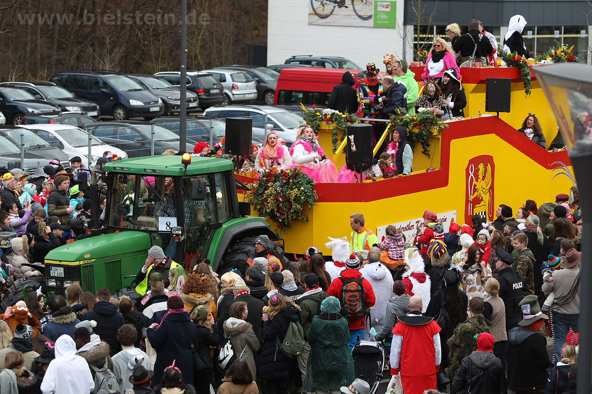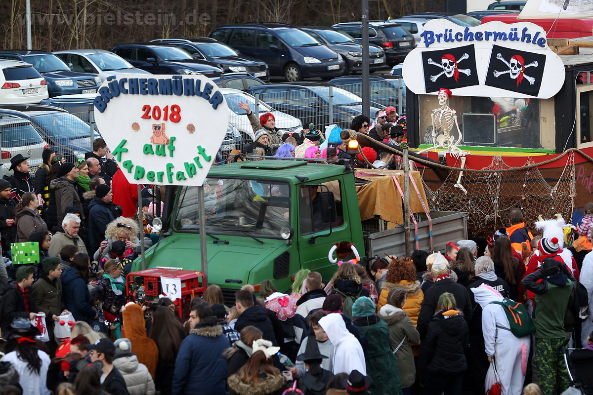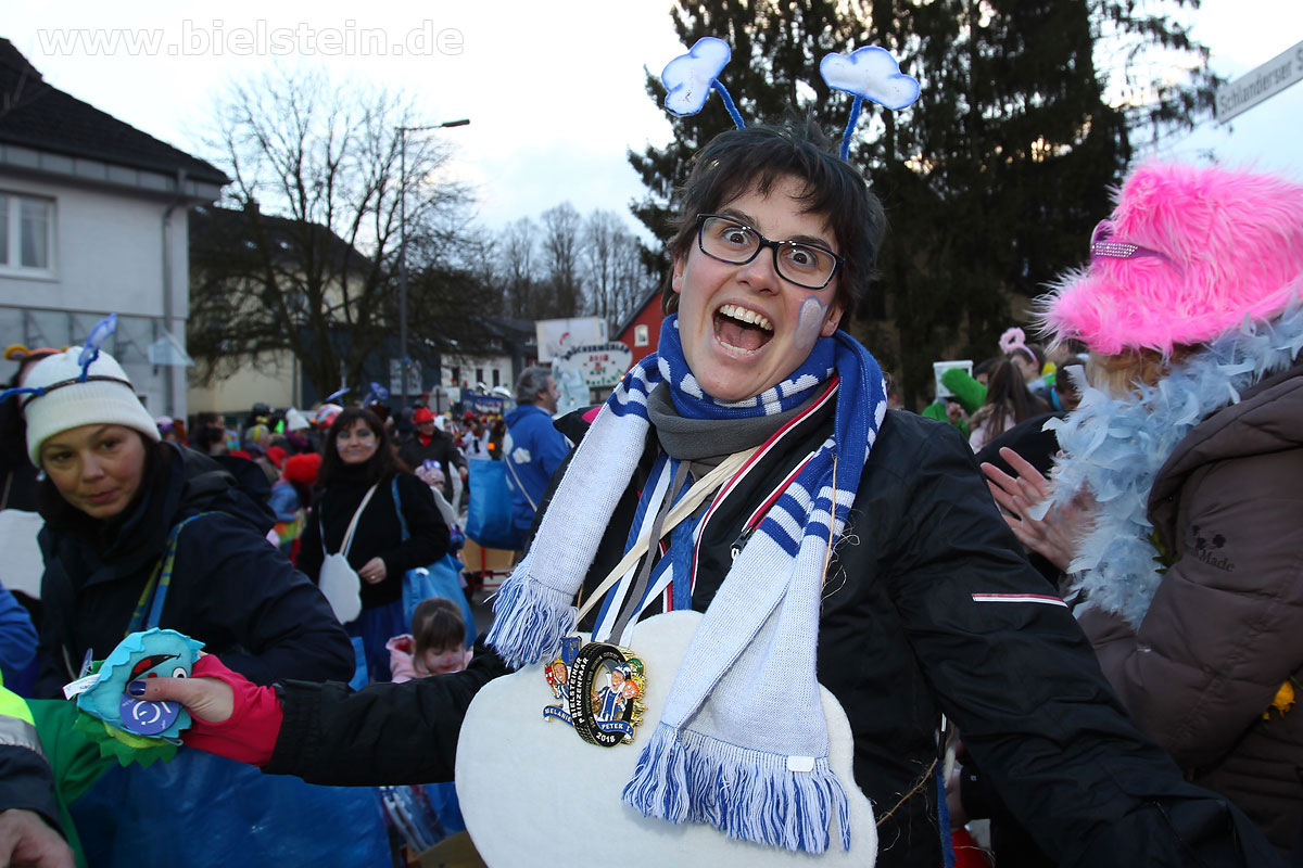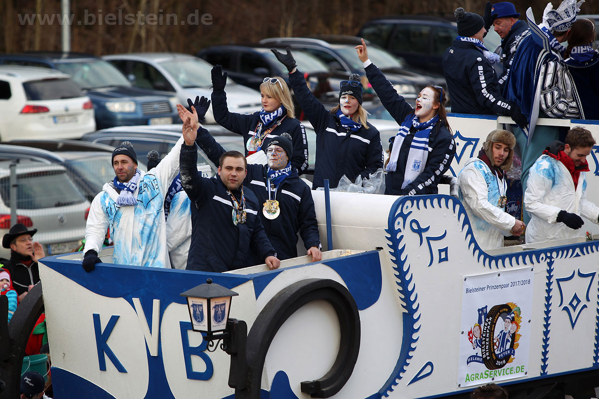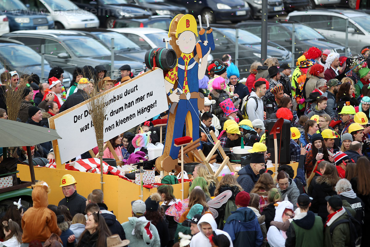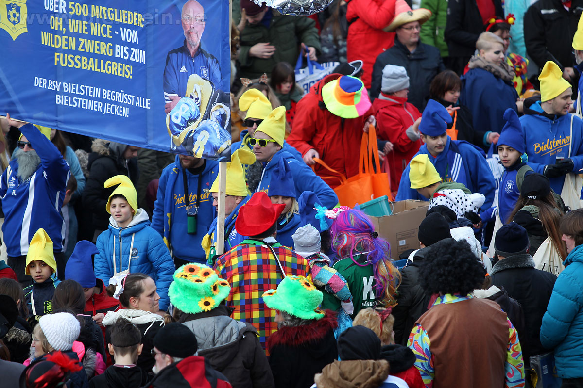 Mit rund 30 Gruppen war der Bielsteiner Rosenmontagszug 2018 mal wieder erstaunlich lang geraten, es dauerte rund eine Stunde, bis sich die Fußgruppen und Wagen durch die bunte Bielsteiner Schaar kämpfte. Und weils so schön war, kam der Zug gleich nochmal, aber das ist schon lange Tradition in Bielstein.