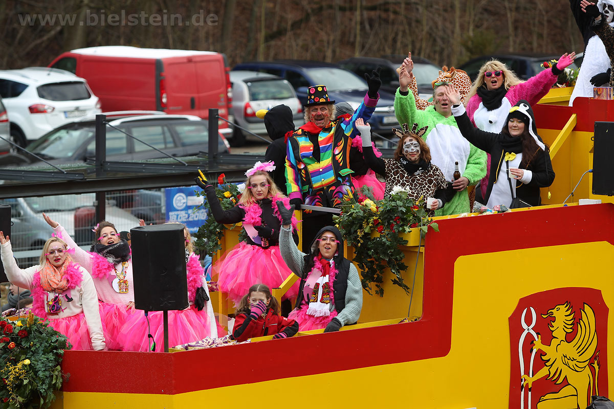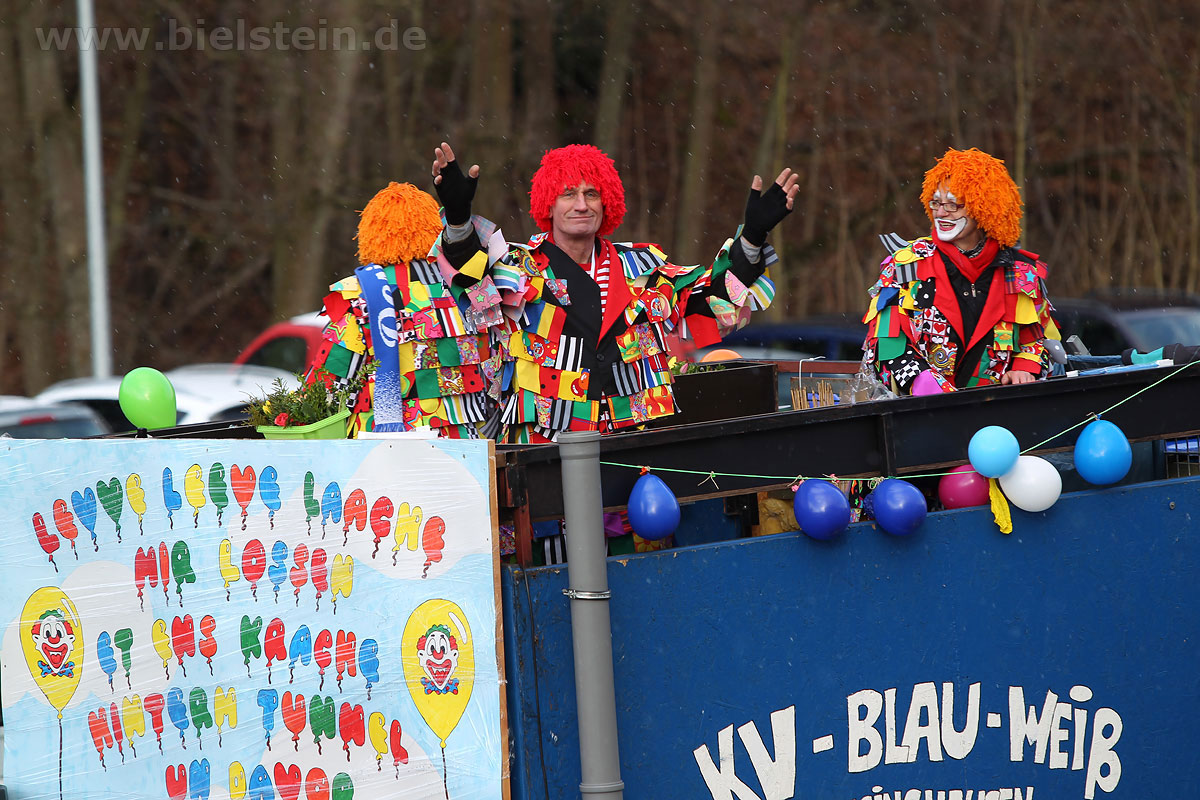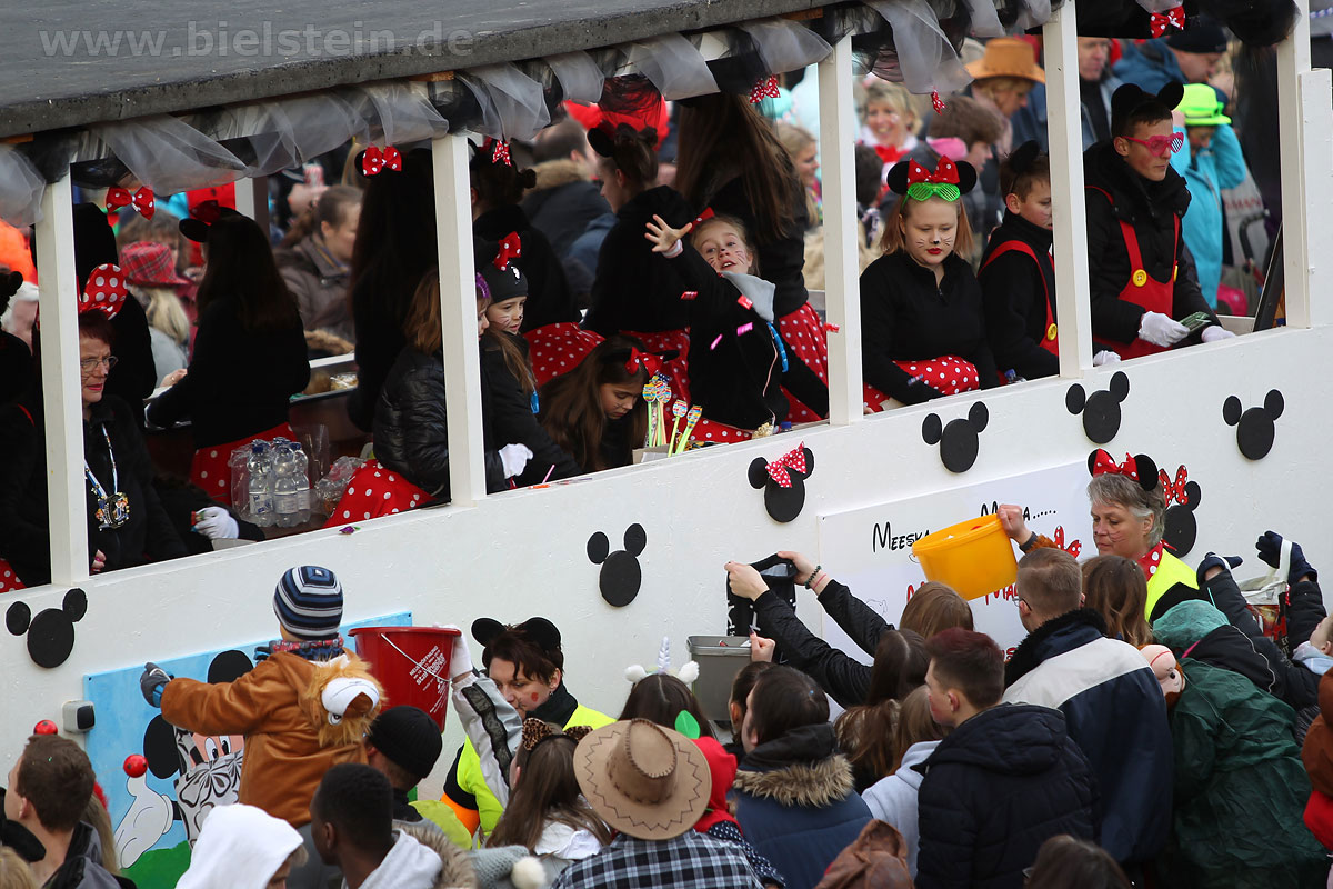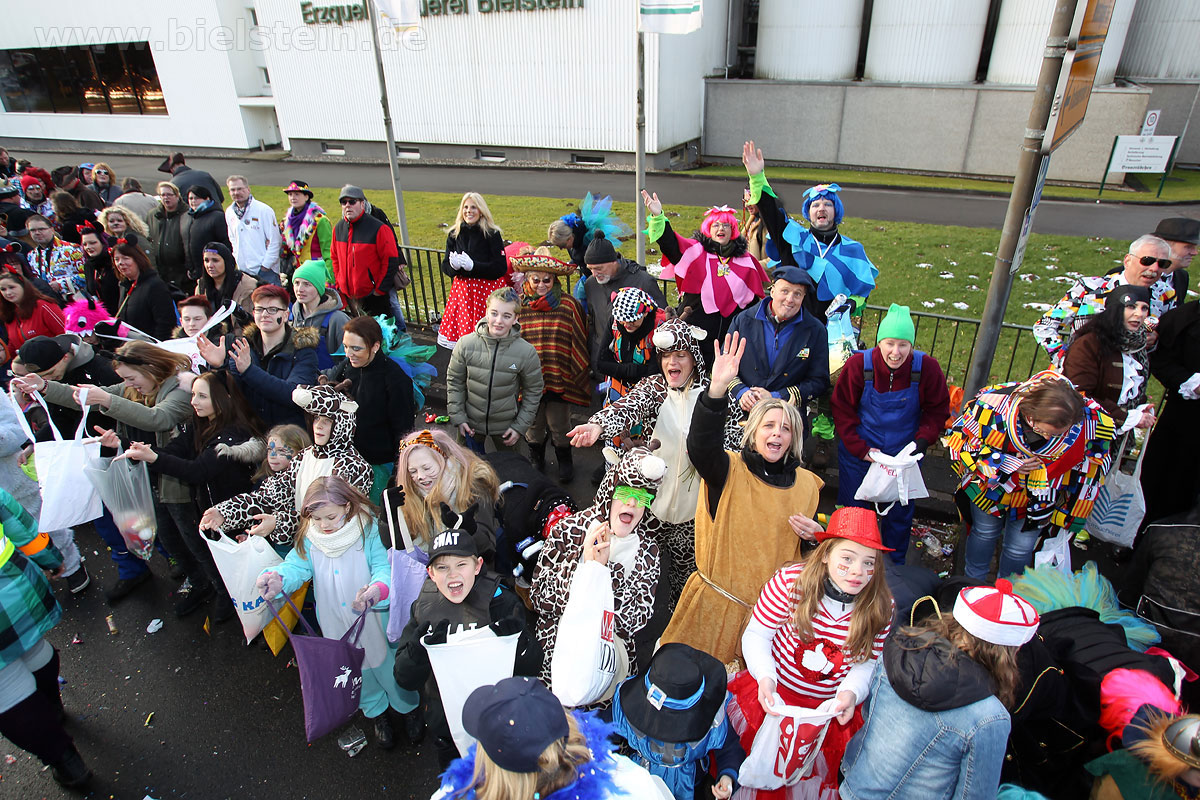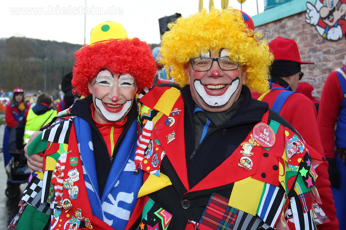 Mit rund 30 Gruppen war der Bielsteiner Rosenmontagszug 2018 mal wieder erstaunlich lang geraten, es dauerte rund eine Stunde, bis sich die Fußgruppen und Wagen durch die bunte Bielsteiner Schaar kämpfte. Und weils so schön war, kam der Zug gleich nochmal, aber das ist schon lange Tradition in Bielstein.