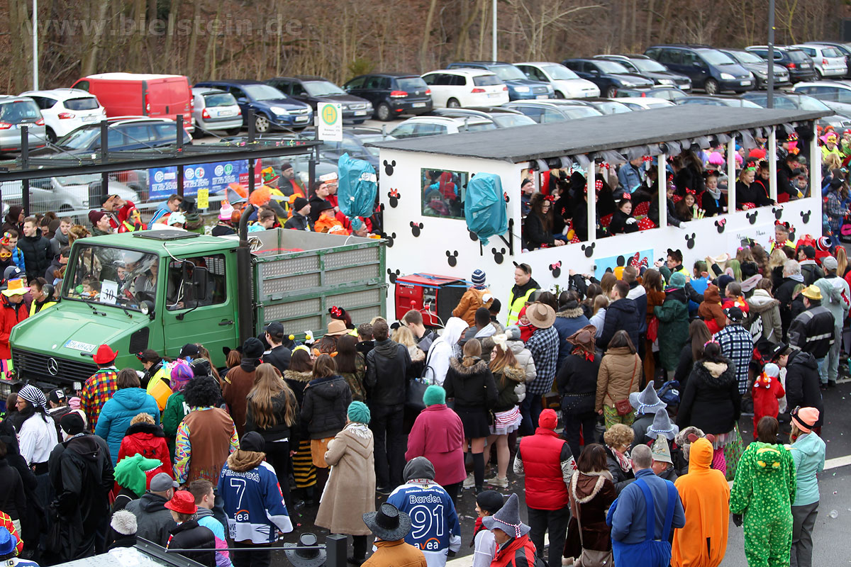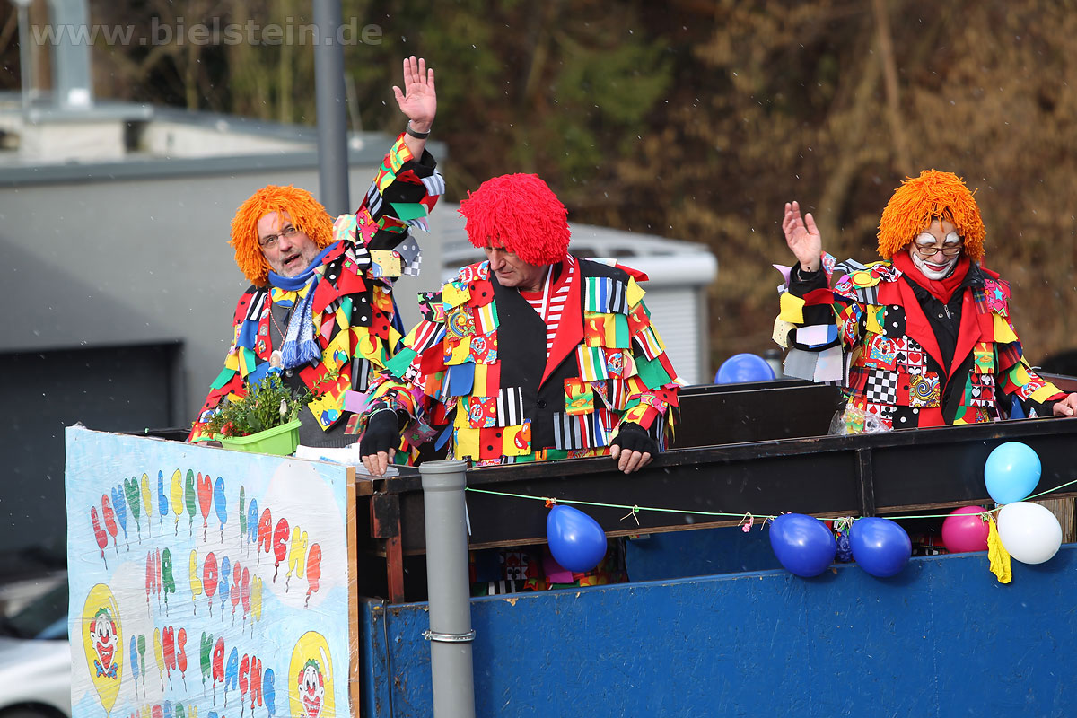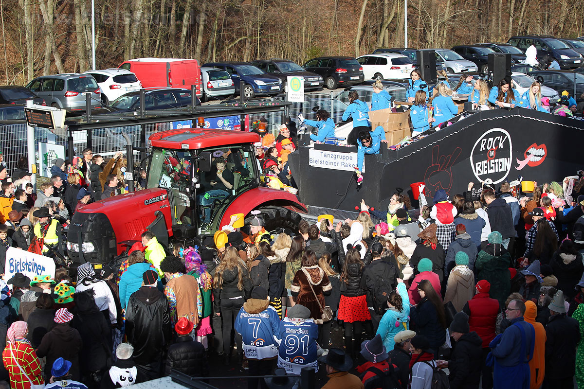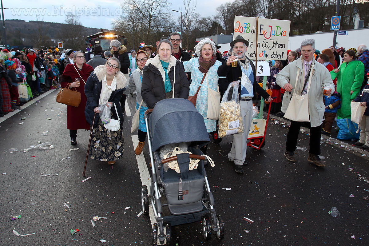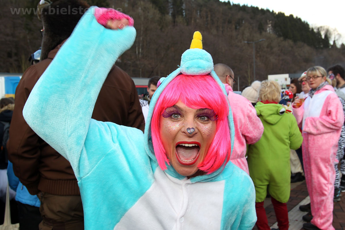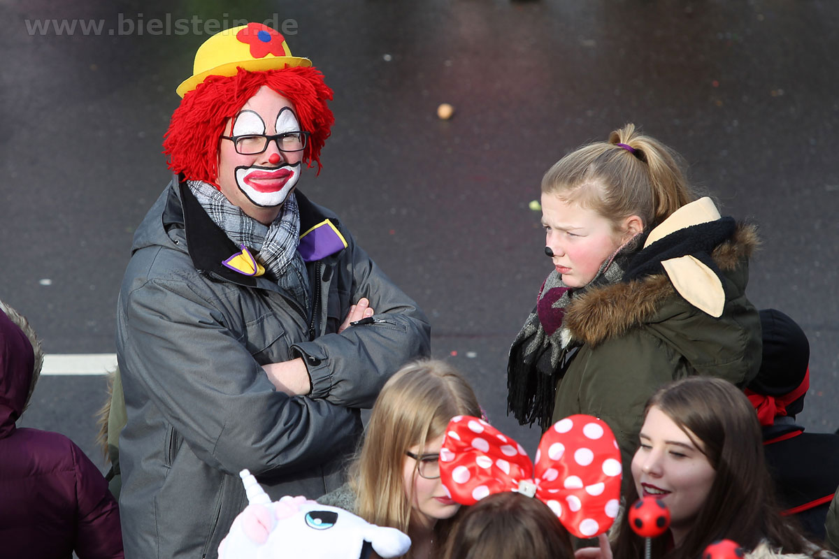 Mit rund 30 Gruppen war der Bielsteiner Rosenmontagszug 2018 mal wieder erstaunlich lang geraten, es dauerte rund eine Stunde, bis sich die Fußgruppen und Wagen durch die bunte Bielsteiner Schaar kämpfte. Und weils so schön war, kam der Zug gleich nochmal, aber das ist schon lange Tradition in Bielstein.