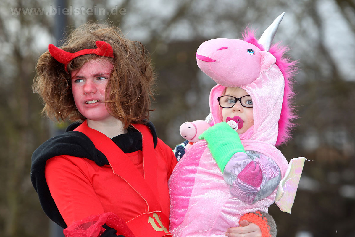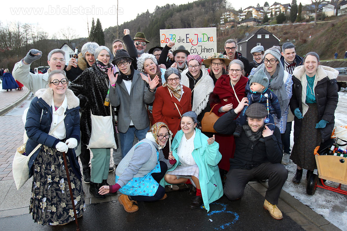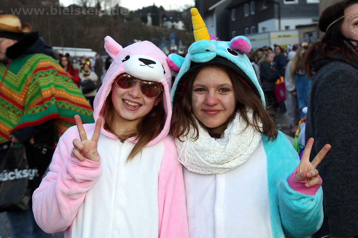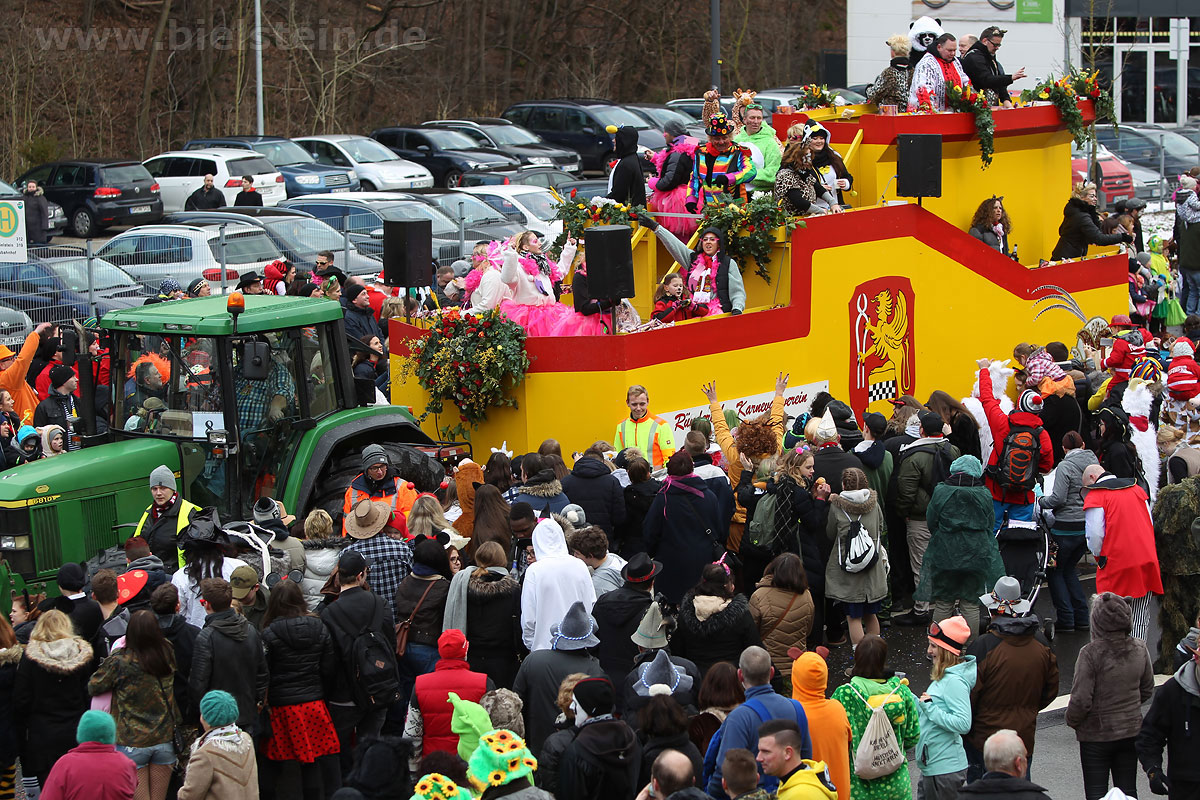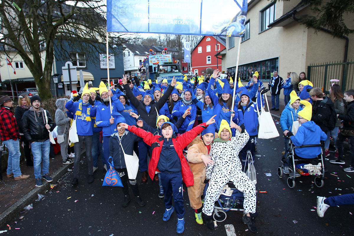 Mit rund 30 Gruppen war der Bielsteiner Rosenmontagszug 2018 mal wieder erstaunlich lang geraten, es dauerte rund eine Stunde, bis sich die Fußgruppen und Wagen durch die bunte Bielsteiner Schaar kämpfte. Und weils so schön war, kam der Zug gleich nochmal, aber das ist schon lange Tradition in Bielstein.