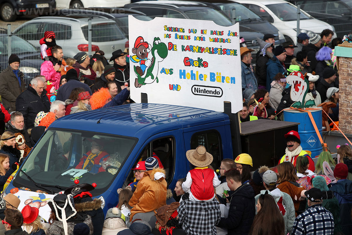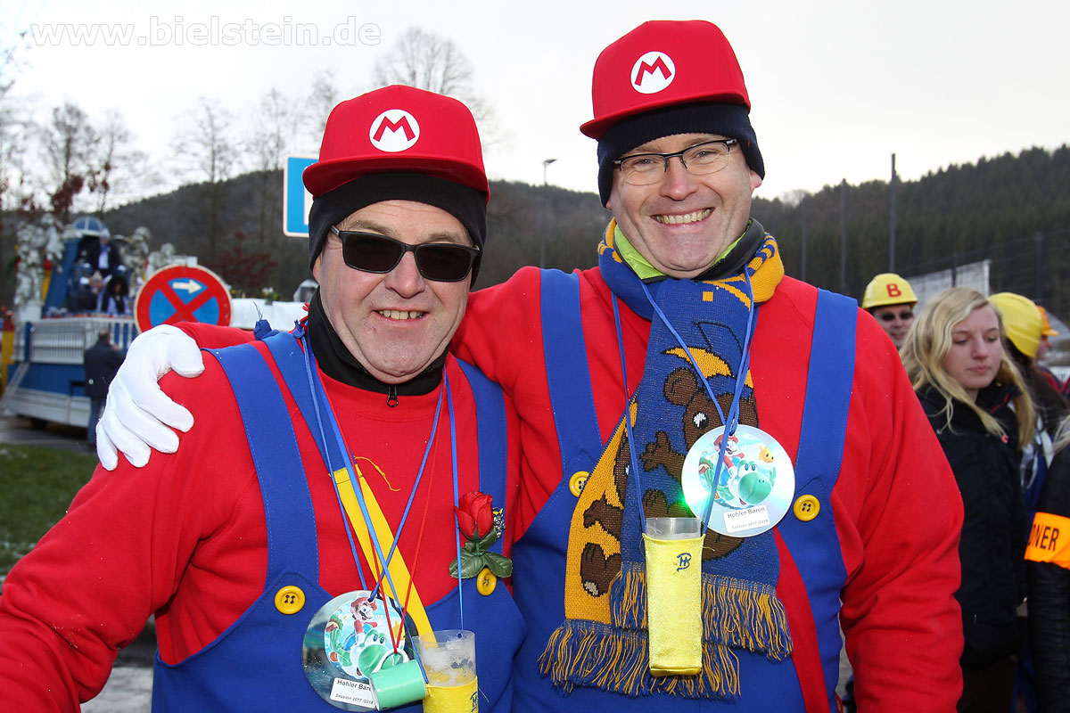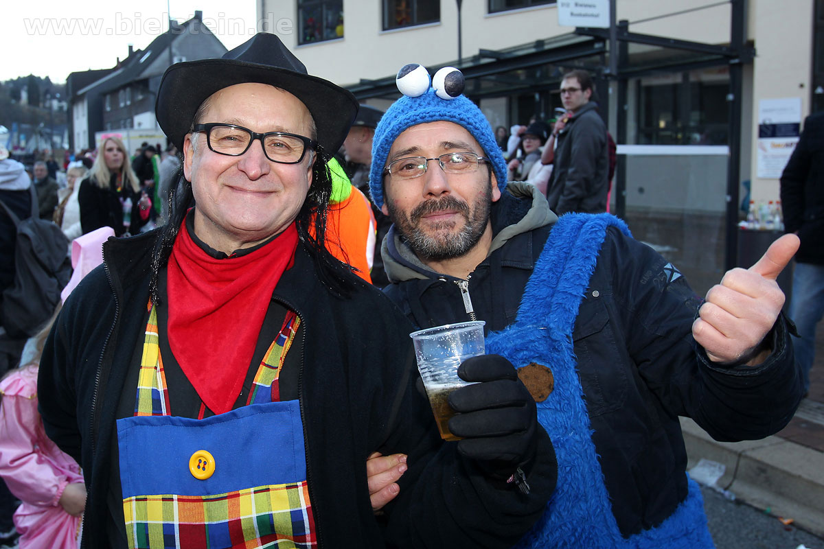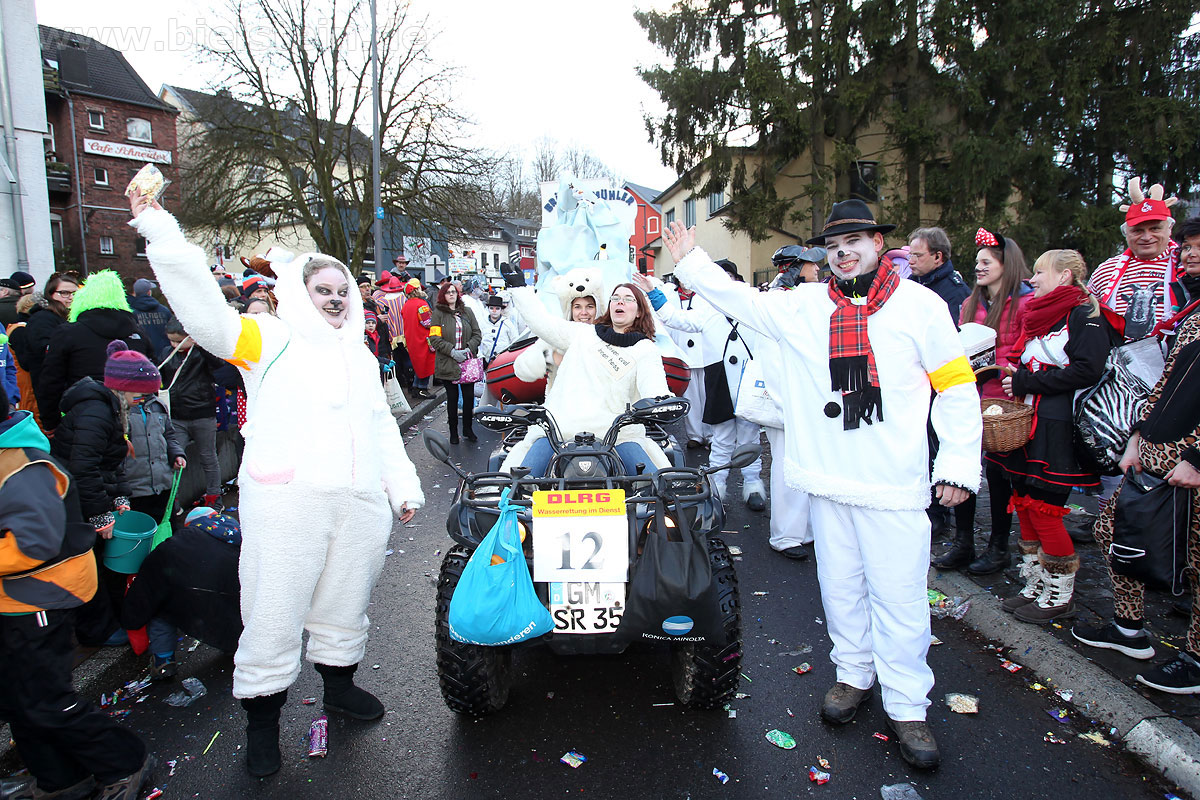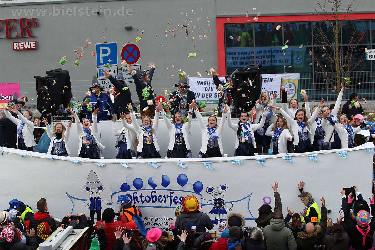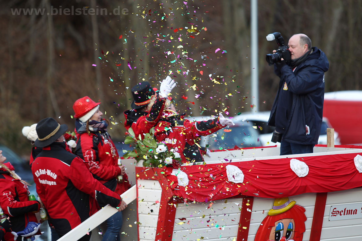Mit rund 30 Gruppen war der Bielsteiner Rosenmontagszug 2018 mal wieder erstaunlich lang geraten, es dauerte rund eine Stunde, bis sich die Fußgruppen und Wagen durch die bunte Bielsteiner Schaar kämpfte. Und weils so schön war, kam der Zug gleich nochmal, aber das ist schon lange Tradition in Bielstein.