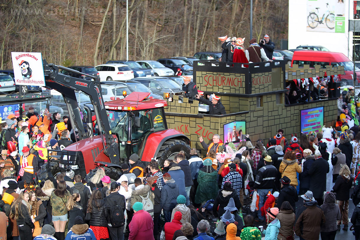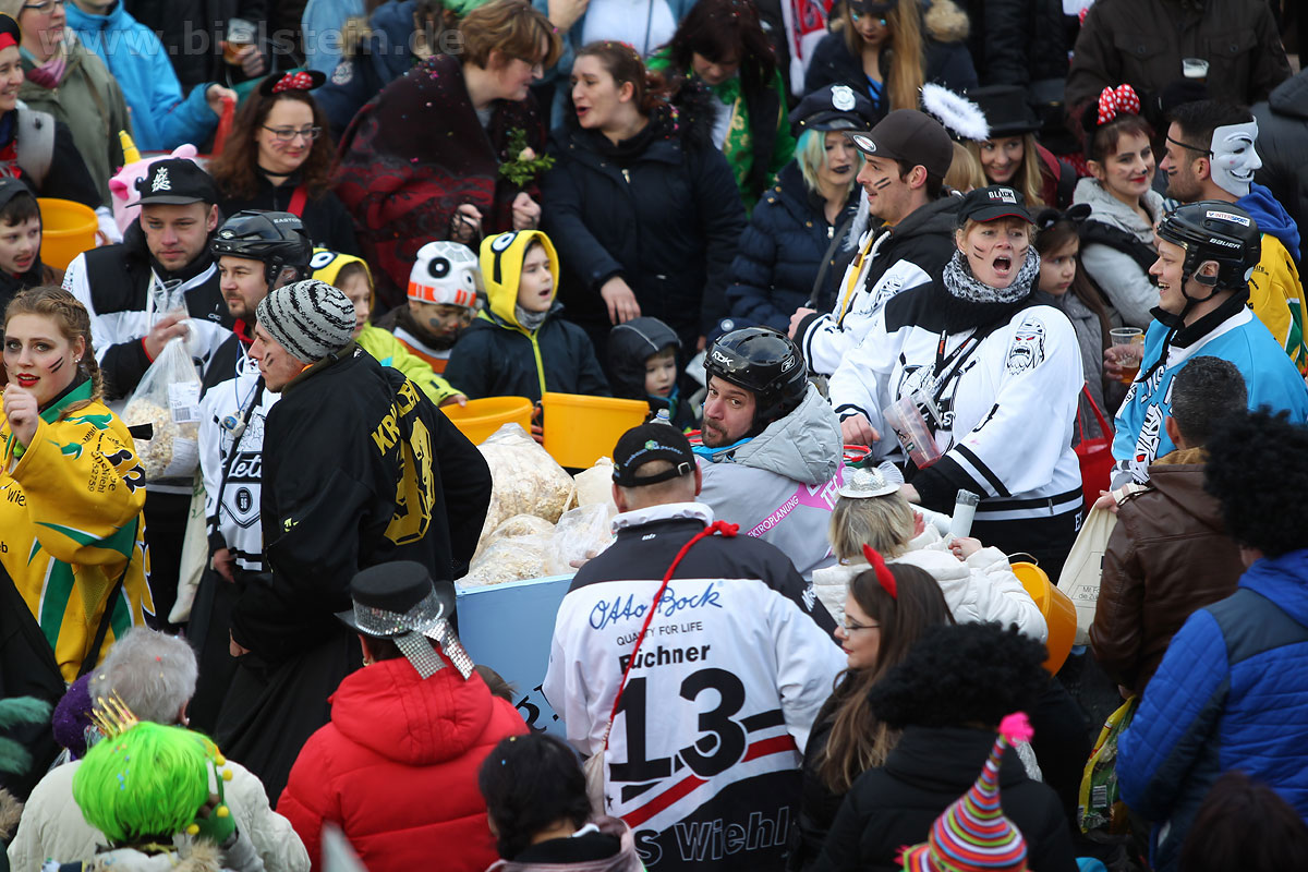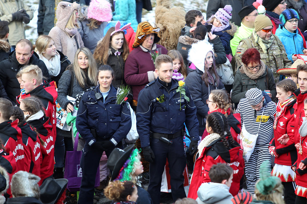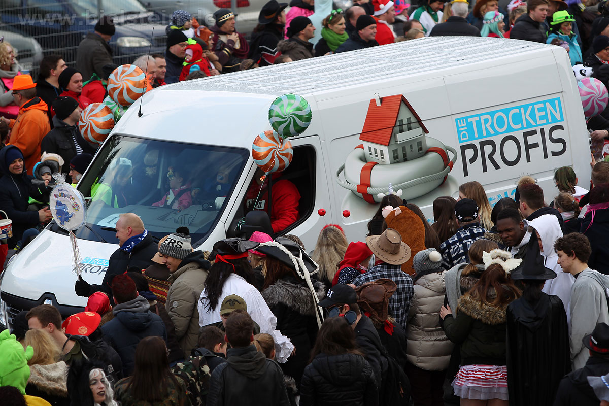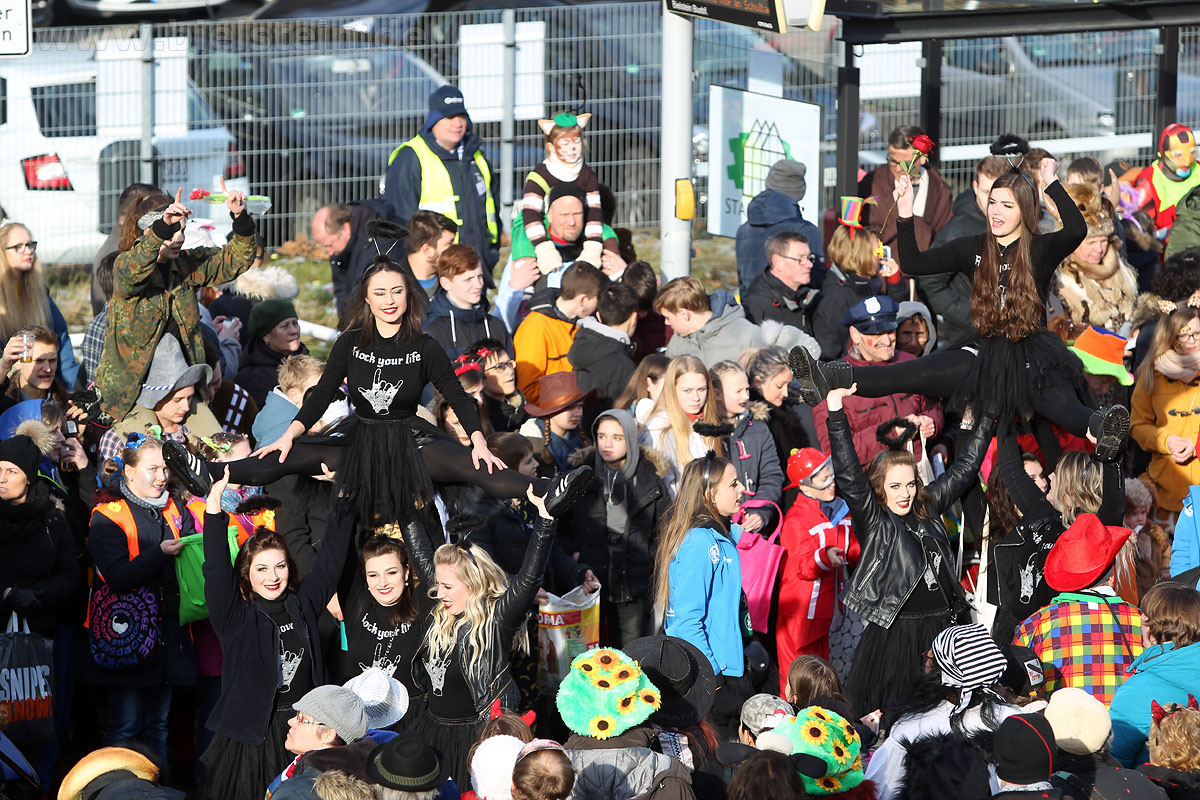 Die Bielsteiner Tanzgruppen waren selbstverständlich auch alle beim Rosenmontagszug mit dabei: Die Lollipops und Crazys, die Raketen und die Tanzmäuse und den Abschluss des Rosenmontagszuges bildeten natürlich Prinz Peter I. und Prinzessin Melanie, die ihr Motto „Seid versichert, wir geben Gummi“ ernst nahmen und beide äußerst spendabel die vielen Leckereien auf das Fußvolk schleuderten.