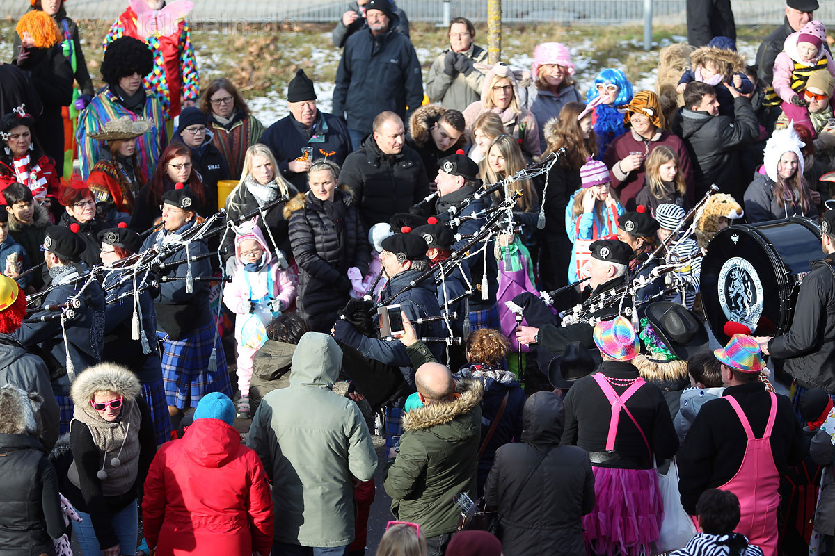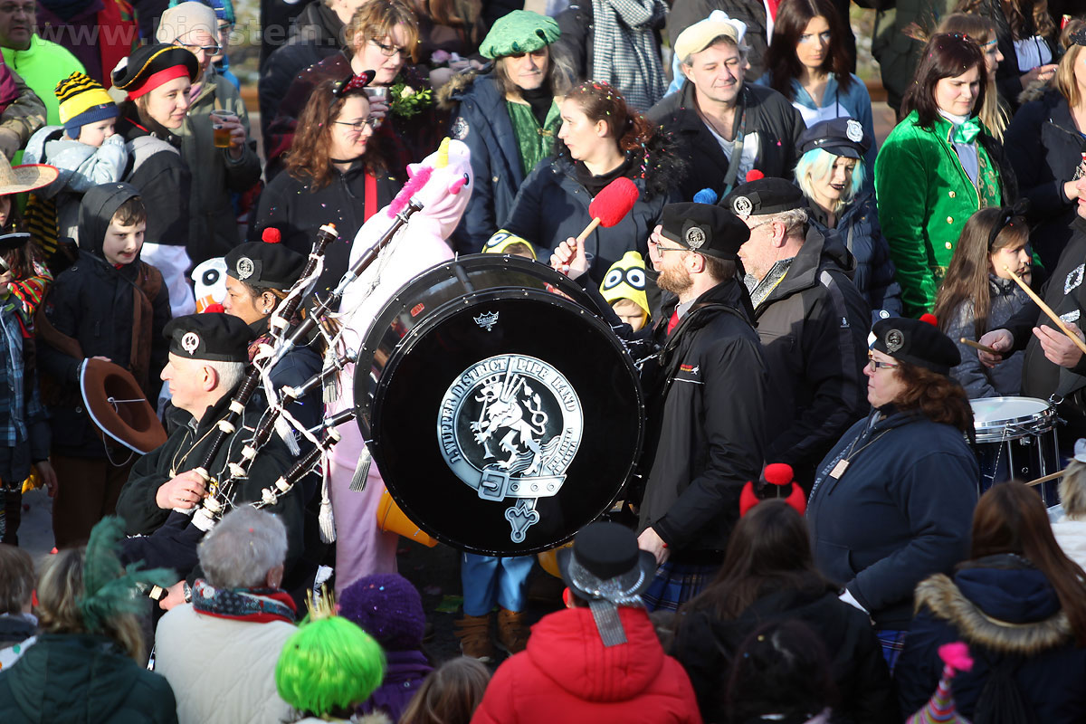 Es gab diesmal auch ein paar Besonderheiten, so war die Diakonie erstmals im Zug vertreten, ihr Motto: „Wir können nicht nur pflegen, sondern auch feiern.“ Die Solinger Dudelsackpfeifer von der Wupper District Pipe Band begleiteten die Schottenröcke aus den Highlands von Stockheim mit Live-Musik!