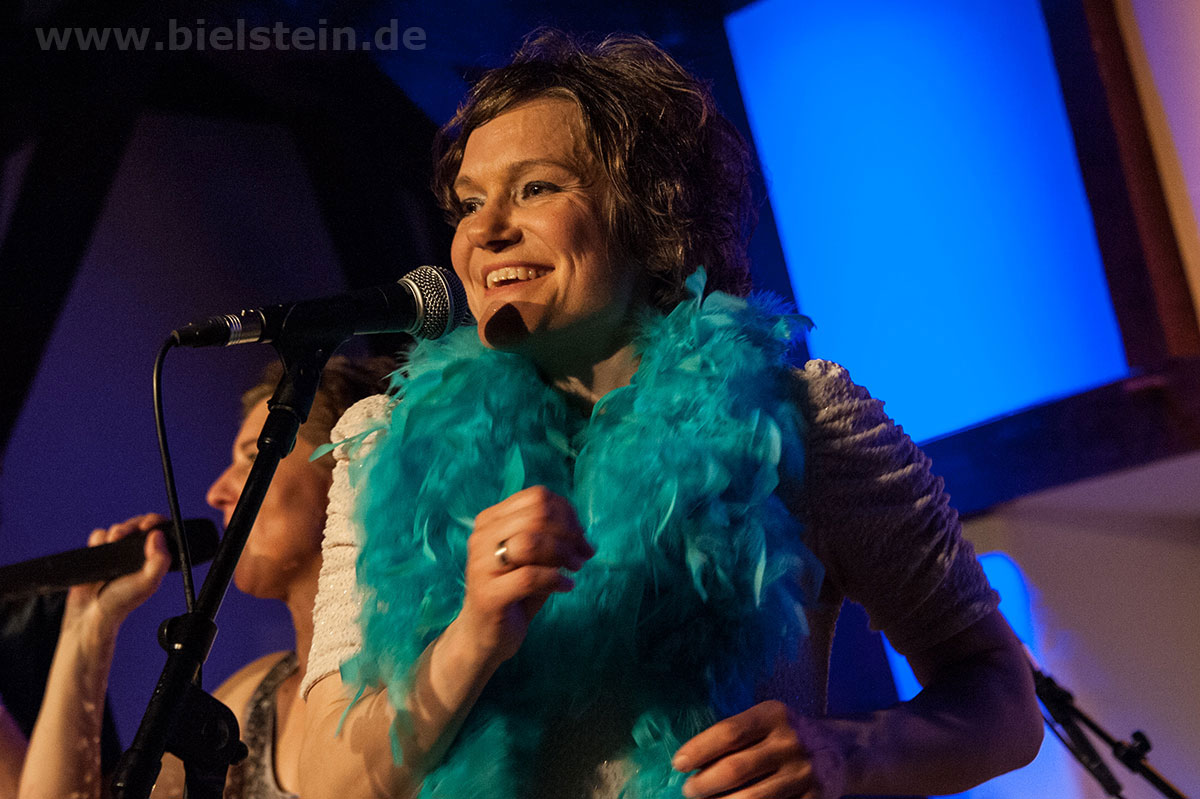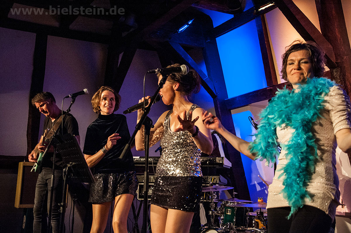 Die Soul- und Funkband „Go Sista“ wurde in 2003 gegründet und ist tief verwurzelt in der Tradition der Black Music. So entstand erst eine Idee, dann ein Sound und nach und nach eine Band, die sich auf das Covern von alten und neuen Soul, Funk und Disco Hits spezialisiert hat. Wie sie zu ihrem Namen kamen, verrieten sie dem Bielsteiner Publikum ganz am Schluss. Der basiert auf einem Stück, dass sie spielen. In „Lady Marmelade“ heißt es nämlich: „Hey sista go sista soul sista flow sista“. Das kam dann auch mit richtig viel Power – noch ein wenig mehr als schon den ganzen Abend.