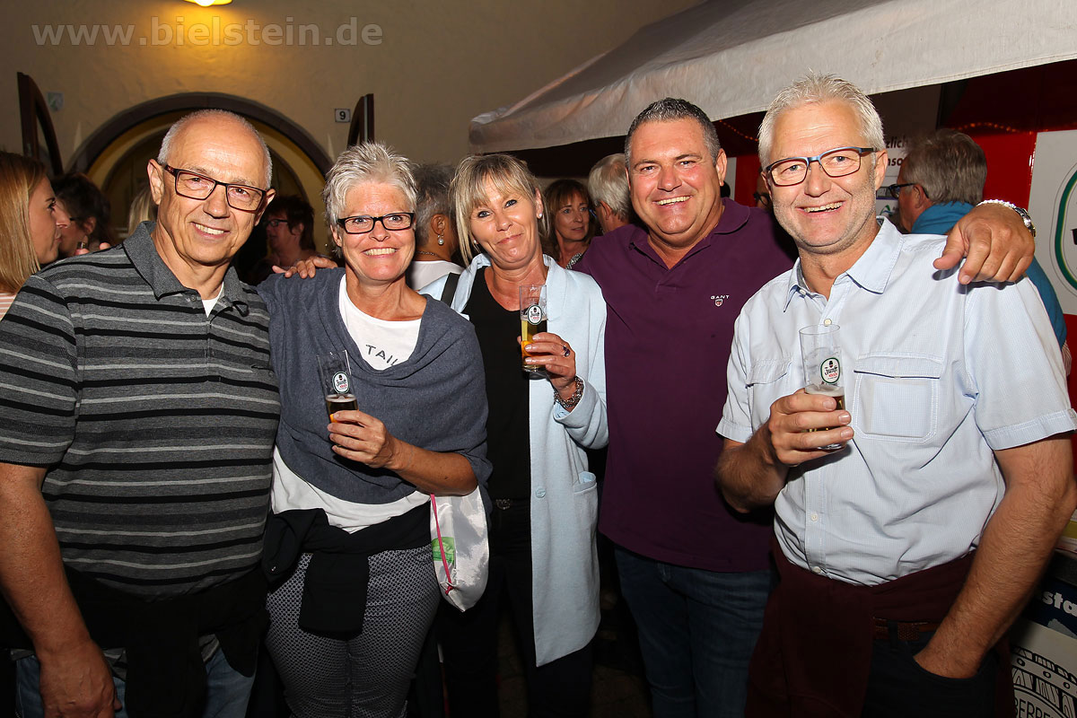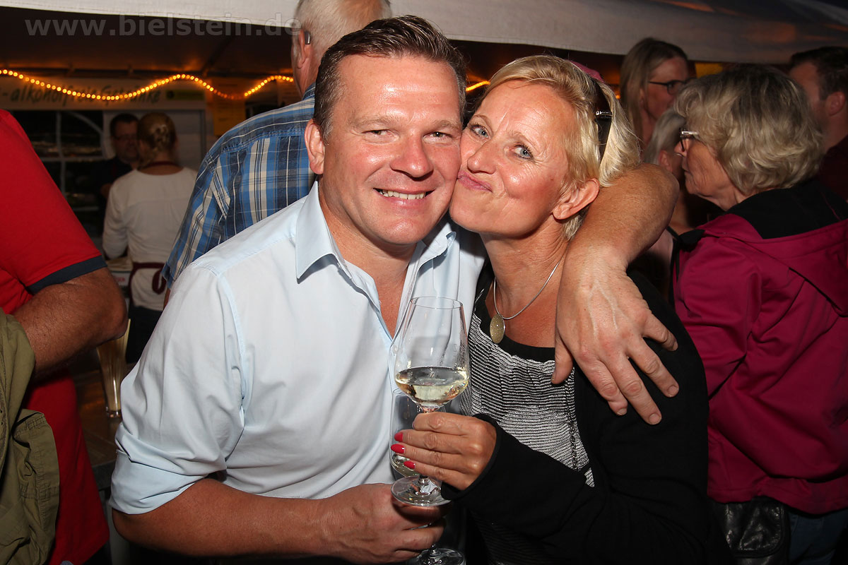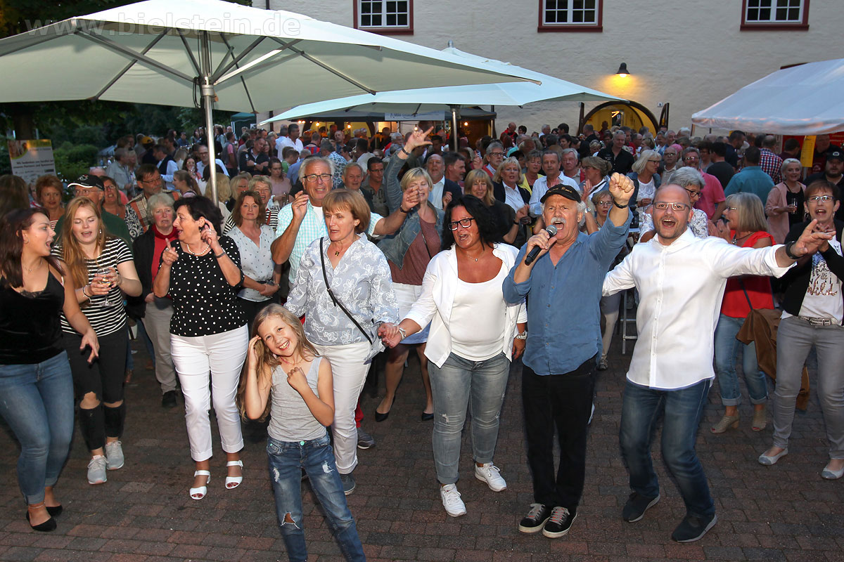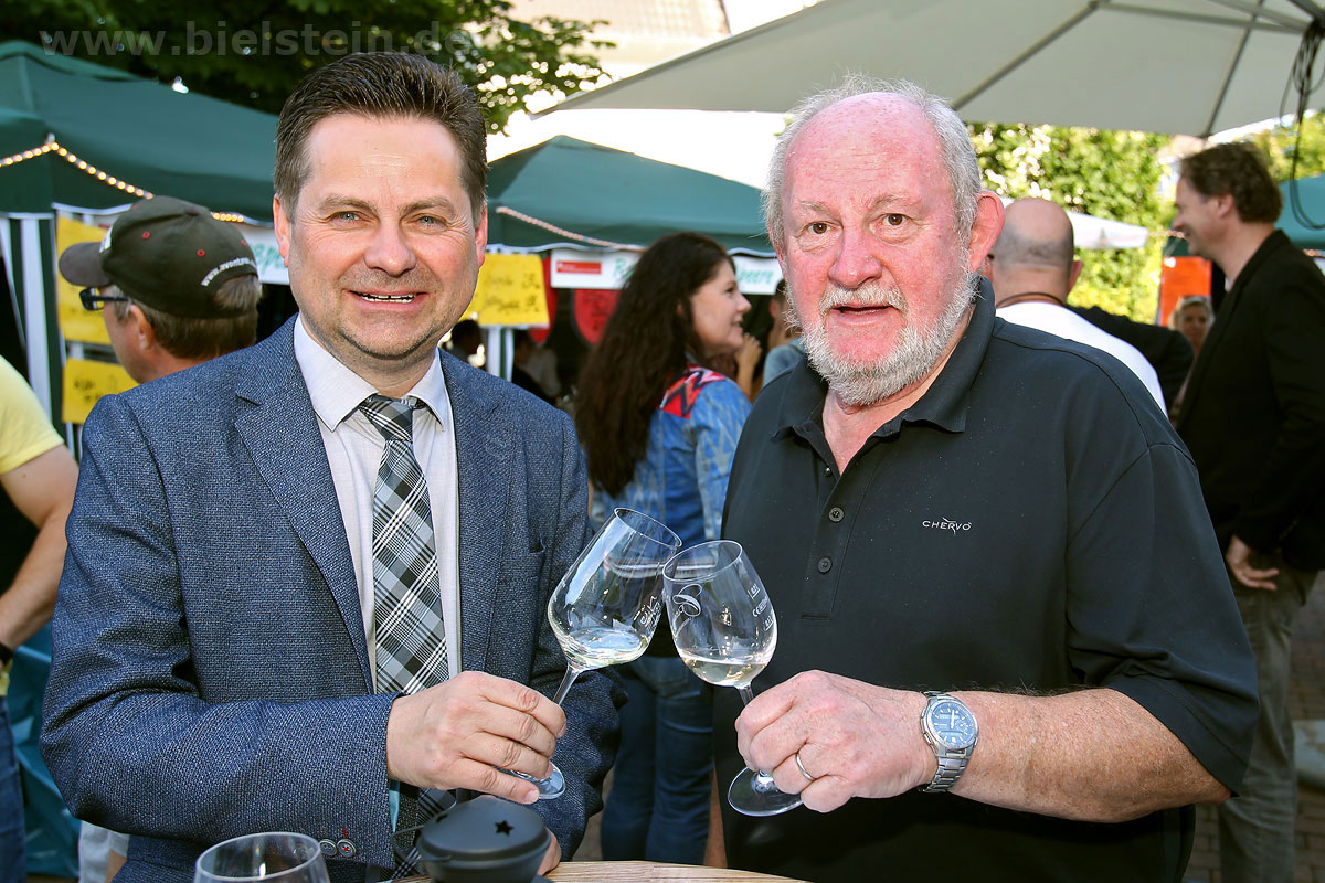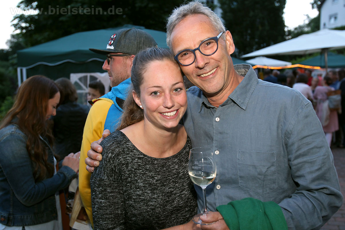 Am Freitag, 15. Juni begrüßte Bürgermeister Ulrich Stücker die Besucher des 10. „Wein & Musik“-Festes am historischen Burghaus in Bielstein.