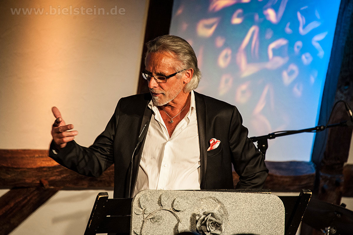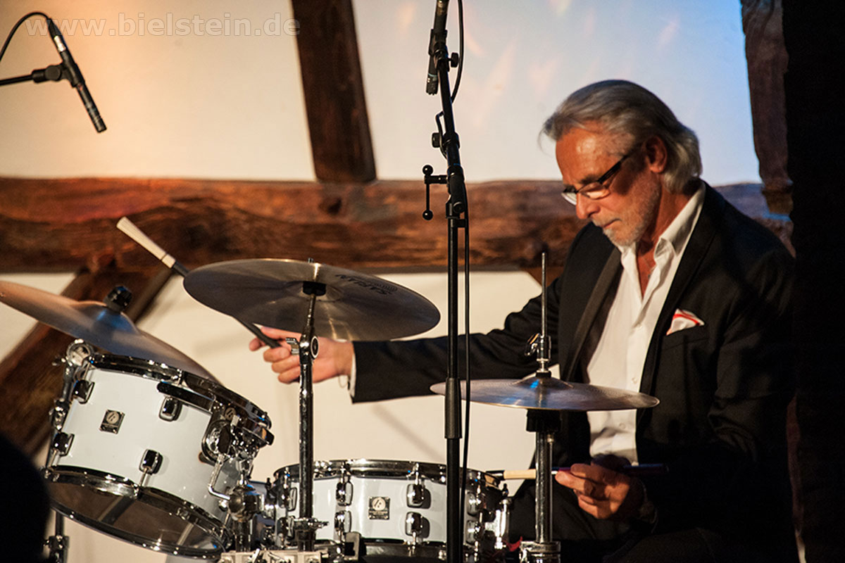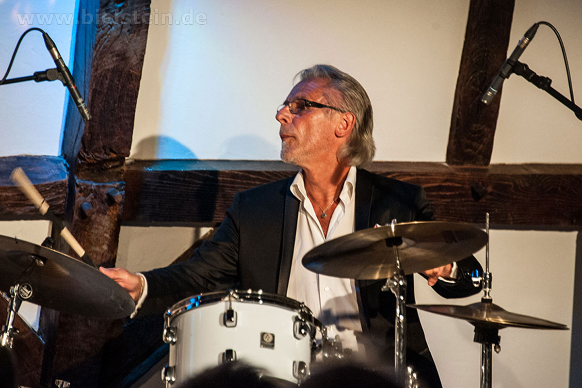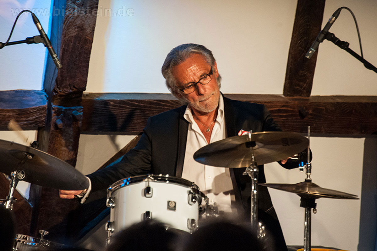 Über zwei Stunden unterhielt der charmante Ausnahmeschlagzeuger Ketzer das Publikum. Ganz viel erzählte er von Paul Kuhn und vom skurrilen Helge Schneider. 15 Jahre war er mit Peter Alexander – „ein wahrer Gentleman“, so Ketzer – unterwegs. Klaus Doldinger rief ihn eines Tages an und mit ihm und der Band „Passport“ trat Willy Ketzer lange auf. Die Tatortmelodie stammt von Doldinger und die erste Version begleitete Udo Lindenberg am Schlagzeug. Die Version, die noch heute vor und nach dem Sonntags-Krimi zu hören ist, wurde mit Ketzer eingespielt. „Am Grab gibt es keine Steckdose“ heißt nicht nur das Bühnenprogramm, sondern auch das Buchdebüt der Show-Legende Willy Ketzer. In ihm wirft er einen unverhüllten Blick hinter die Kulissen des Musik-Geschäfts. Der 67-jährige Schlagzeuger hat mit sämtlichen internationalen Musikgrößen gespielt: Von Liza Minnelli und José Carreras über Tom Jones und Johnny Cash bis hin zu James Last und Udo Jürgens. Von der Big Band über die Show Band bis zum Jazz Trio: in allen gewünschten Formationen begeistert die Willy Ketzer Band auch heute noch mit aktuellen Top-Hits oder Oldies der letzten Jahrzehnte. Der in Köln lebende Schlagzeuger, Bandleader und Produzent begann nach dem abgeschlossenen Studium an der Musikhochschule in Köln seine Karriere. Mehrfach wählte ihn die Fachpresse zum besten deutschen Big Band Schlagzeuger. Den Gästen im Burghaus bescherte er mit Plaudereien aus dem musikalischen Nähkästchen einen kurzweiligen Abend.