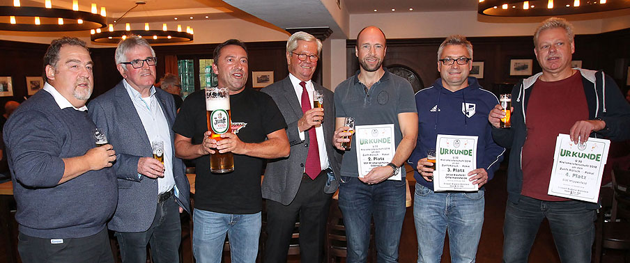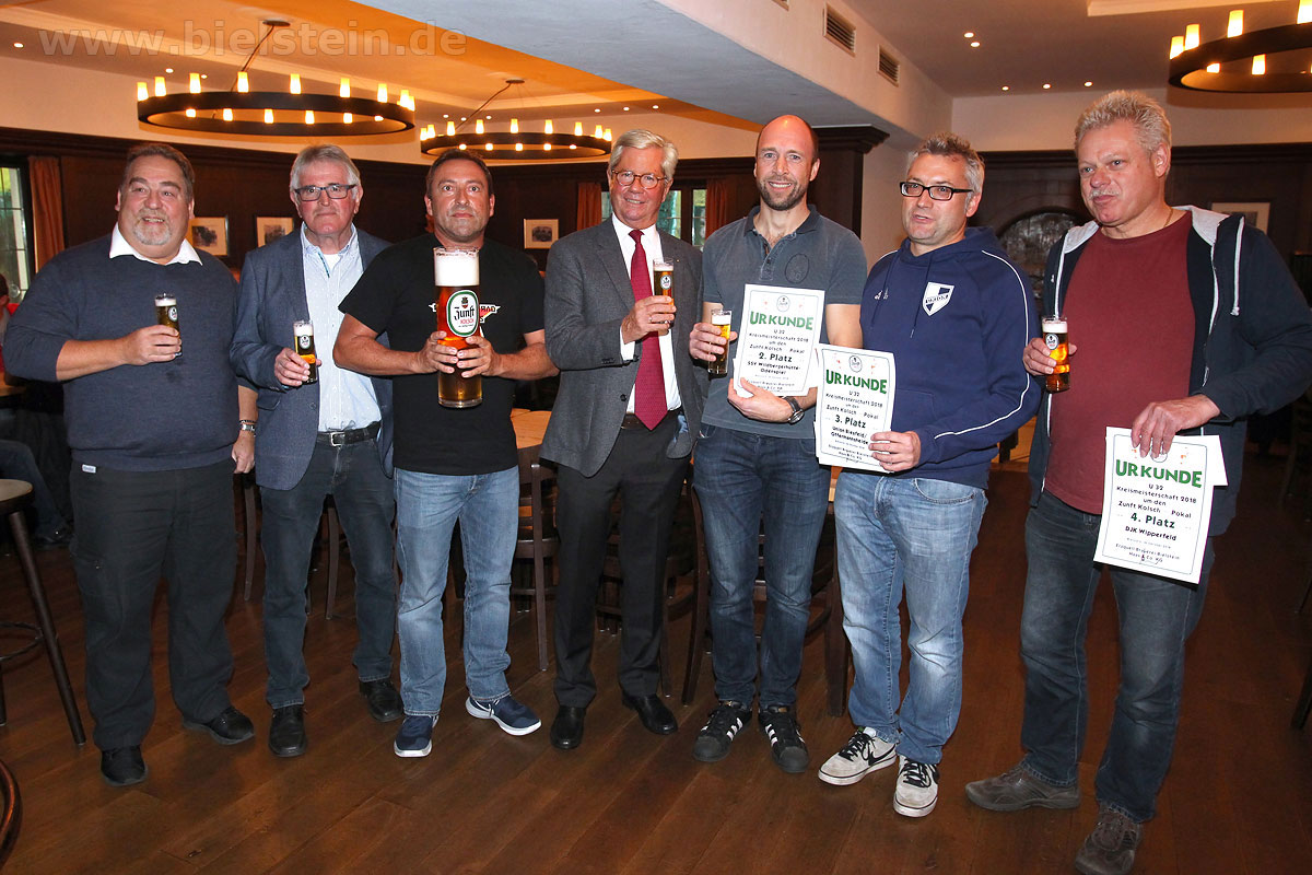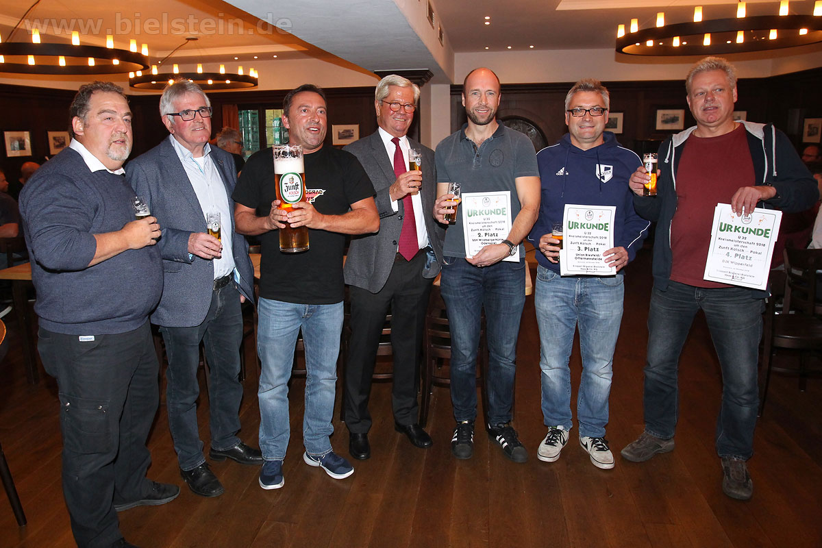 Die vier erfolgreichsten Ü32-Mannschaften des Zunft-Kölsch-Cups wurden wie immer zur Feier ins Braustübchen eingeladen.