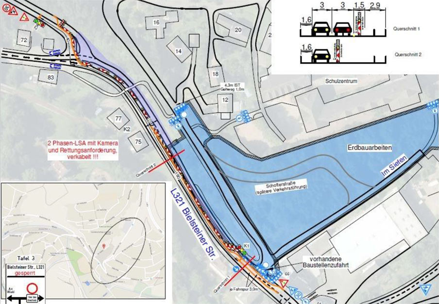 Ab dem 21. Mai 2019 wird im Bereich der Bielsteiner Straße die Hangbefestigung weiter ausgeführt. Die Bielsteiner Straße ist dann für mehrere Monate nur noch einspurig befahrbar.