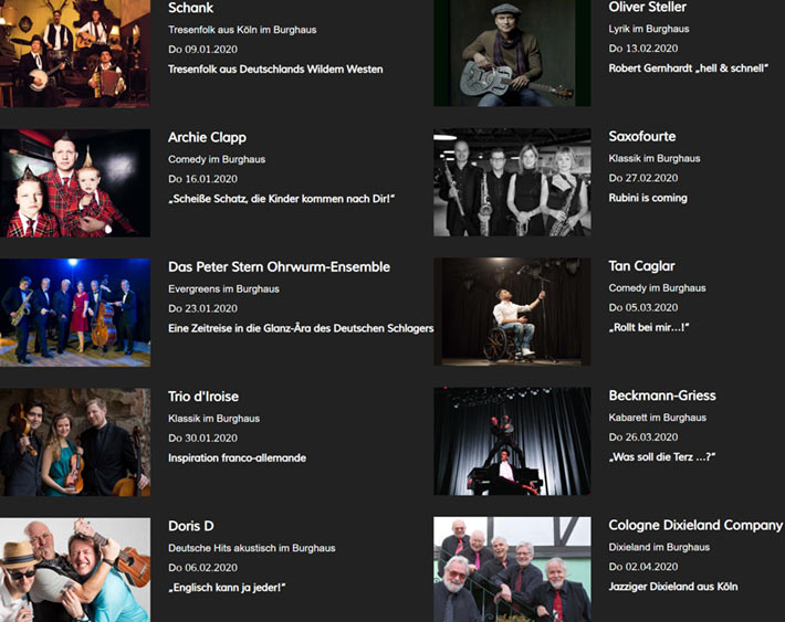 Der Vorverkauf für das Frühjahrsprogramm 2020 des Kulturkreises Wiehl im Burghaus Bielstein hat bereits begonnen.