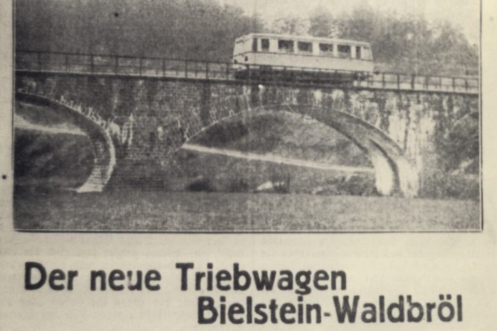 Original Zeitungsausschnitt von der ersten Fahrt des Triebwagens Bielstein-Waldbröl.