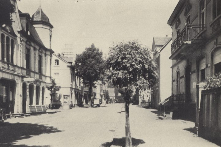 Die Hauptstraße in Höhe des Hotels Bubenzer vor dem 2. Weltkrieg.